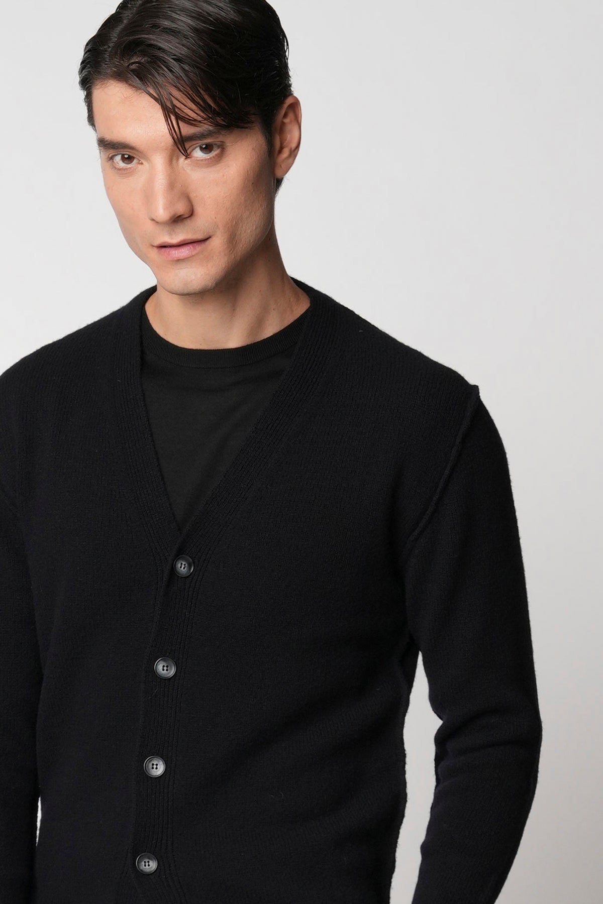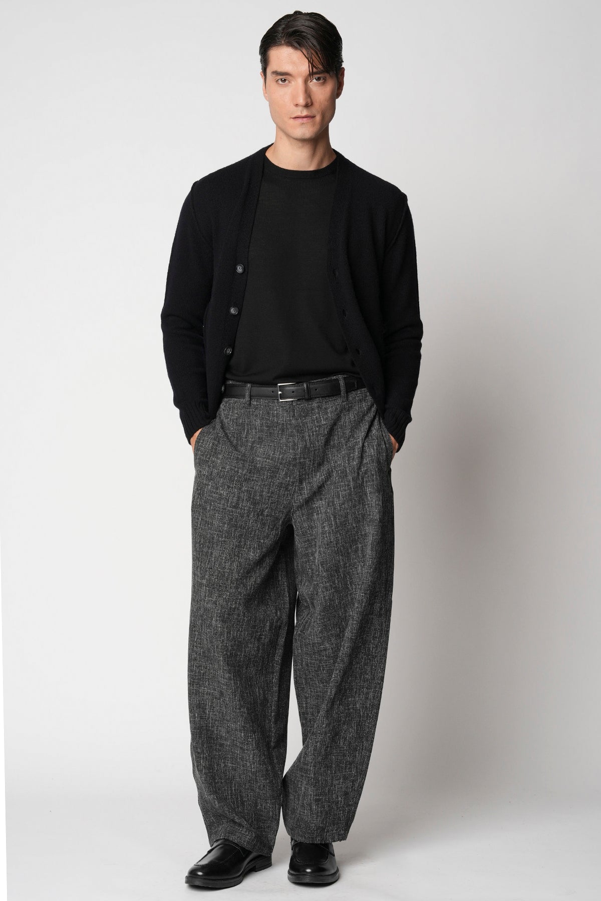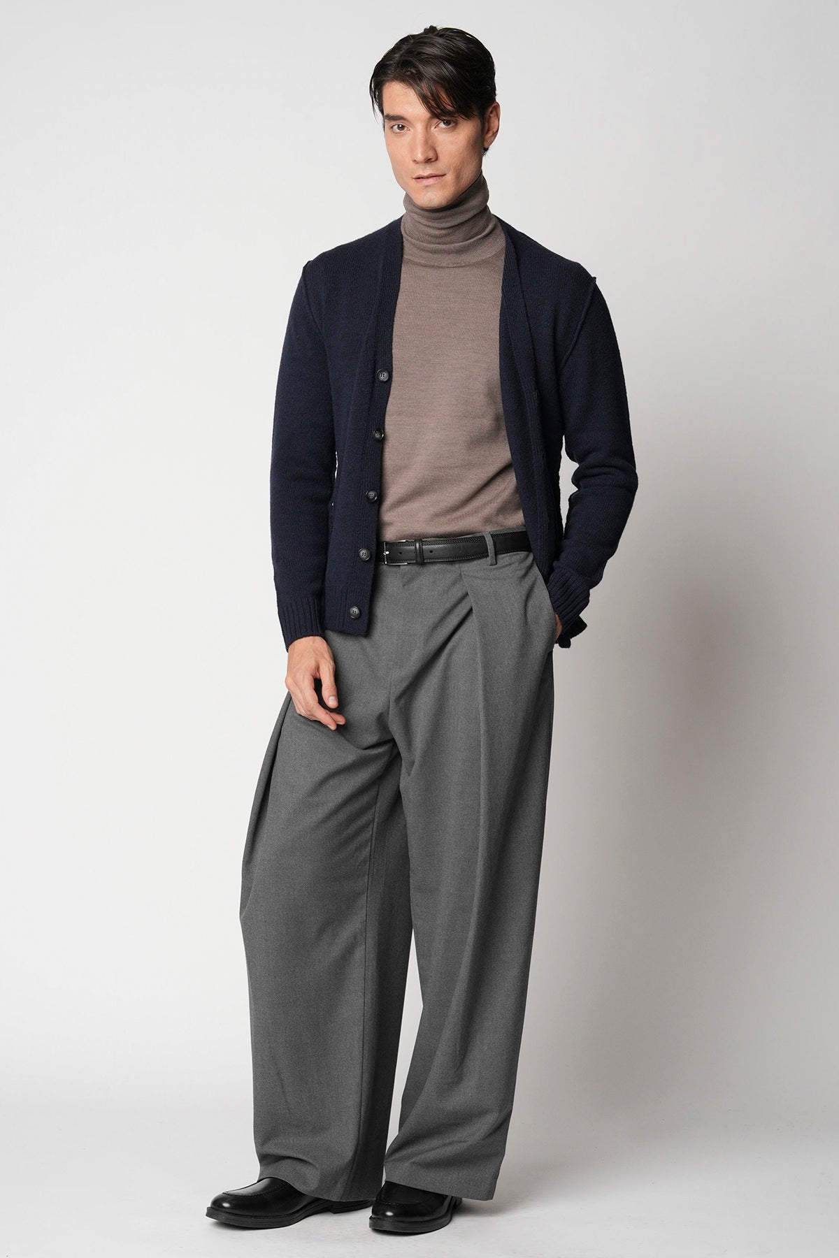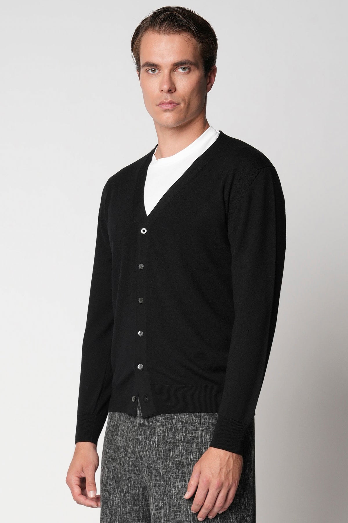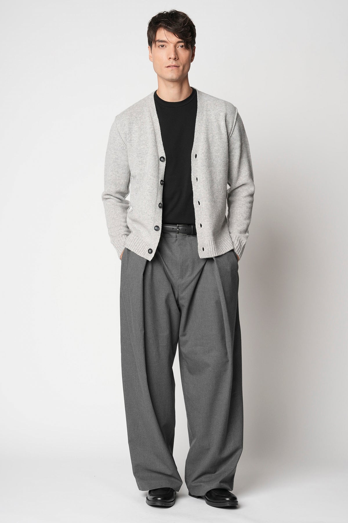 Cardigan jacquard grigio in lana merino extrafine fin.12 LTD ED