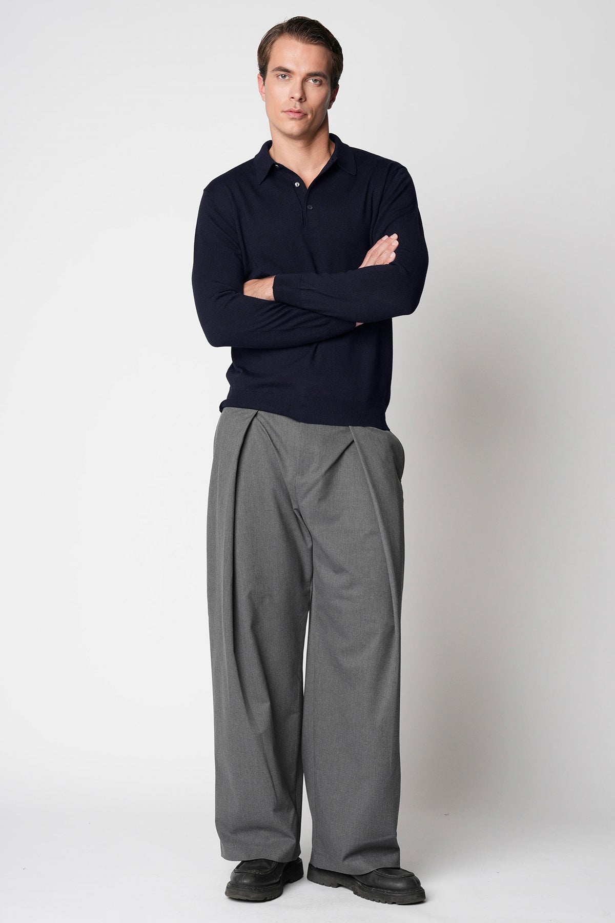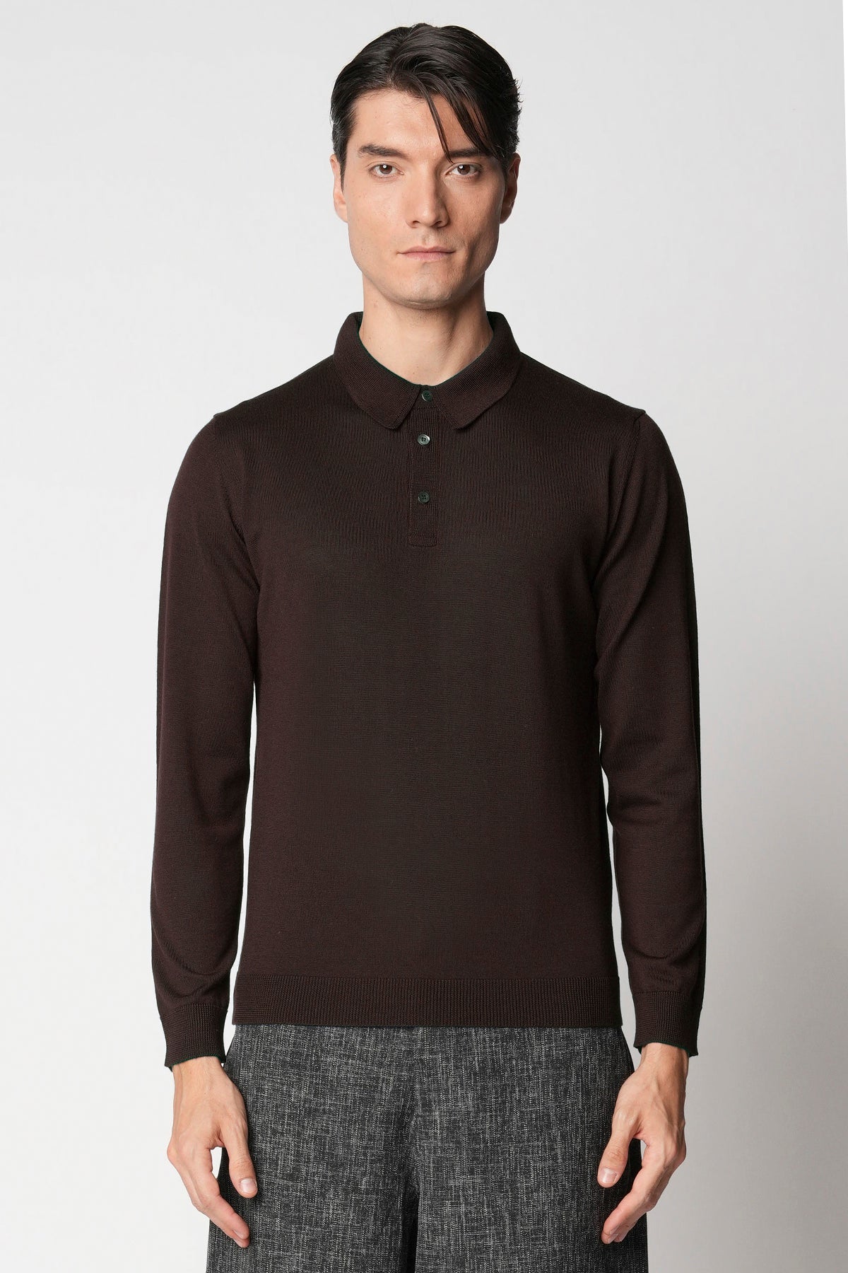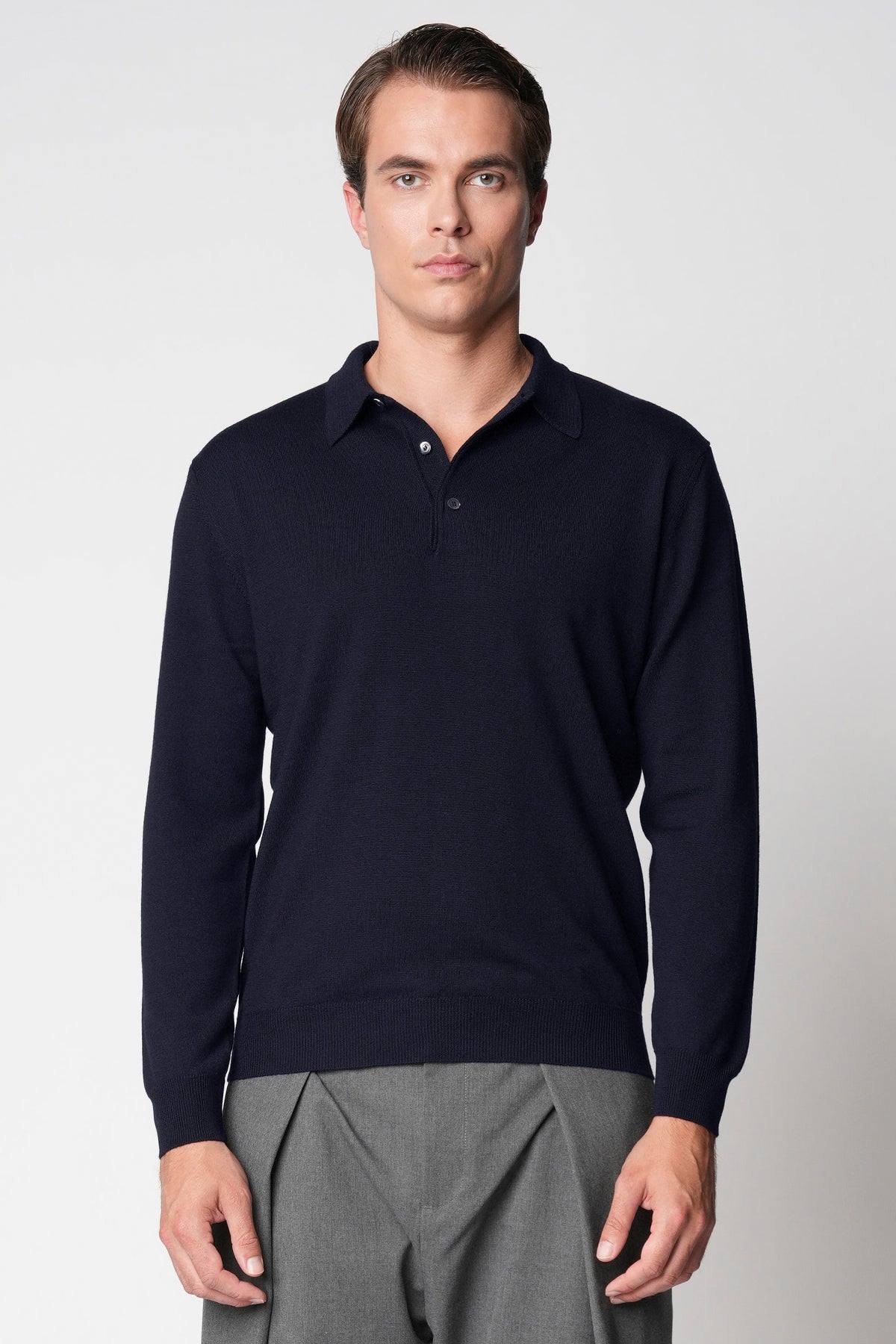 Polo bottoni rasato in lana merino extrafine fin.14