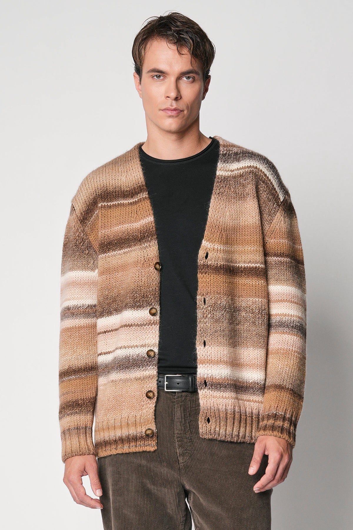 Maxi cardigan cammello in filo multicolor misto lana fin.3