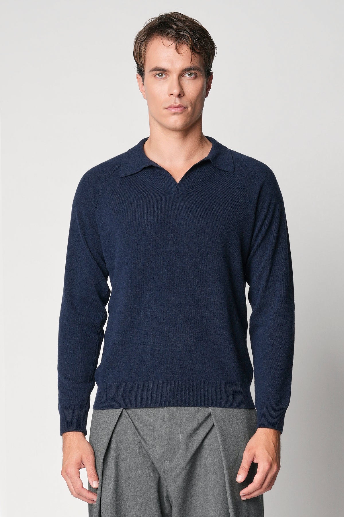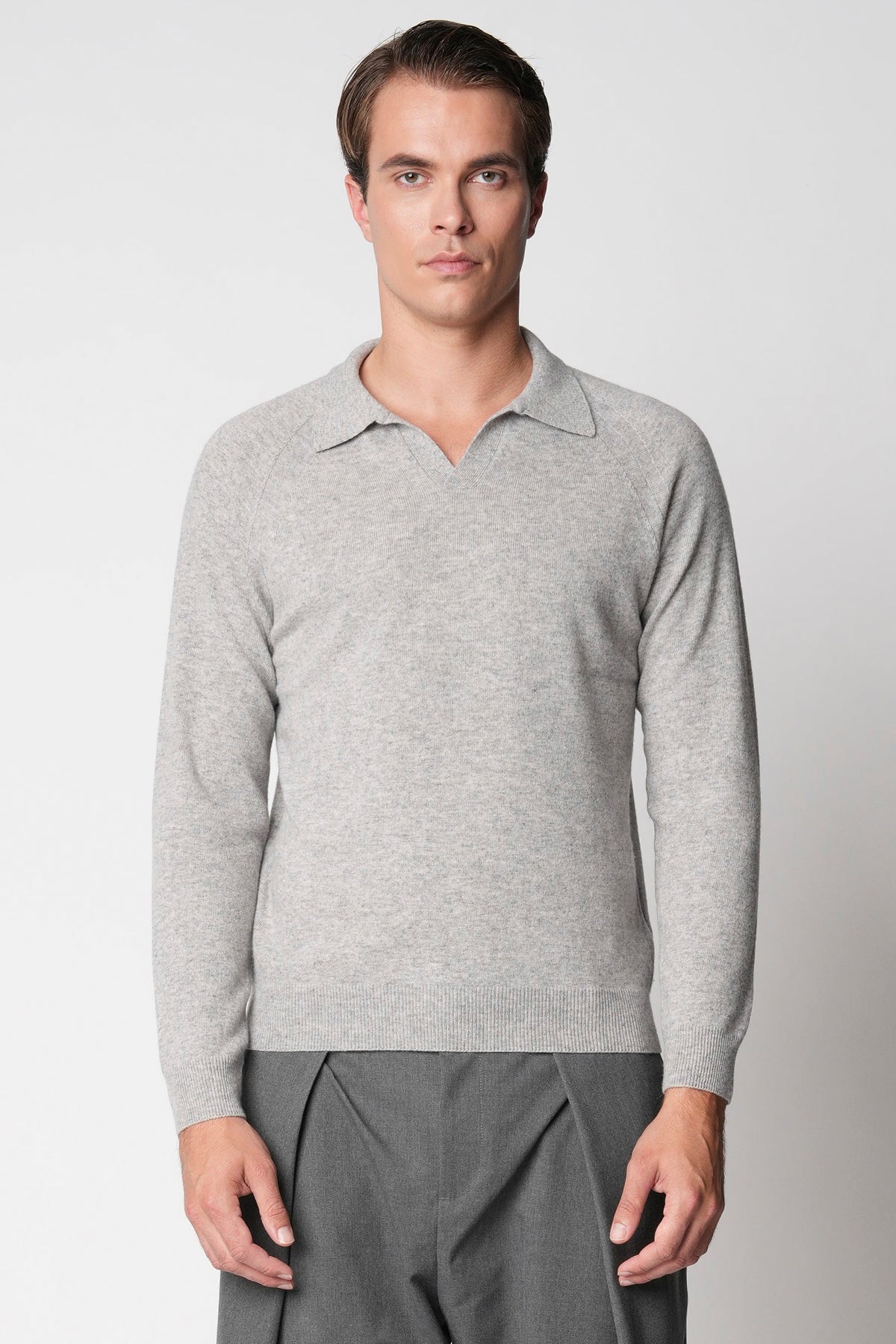 Polo scollo a V rasato in lana e cashmere fin.12