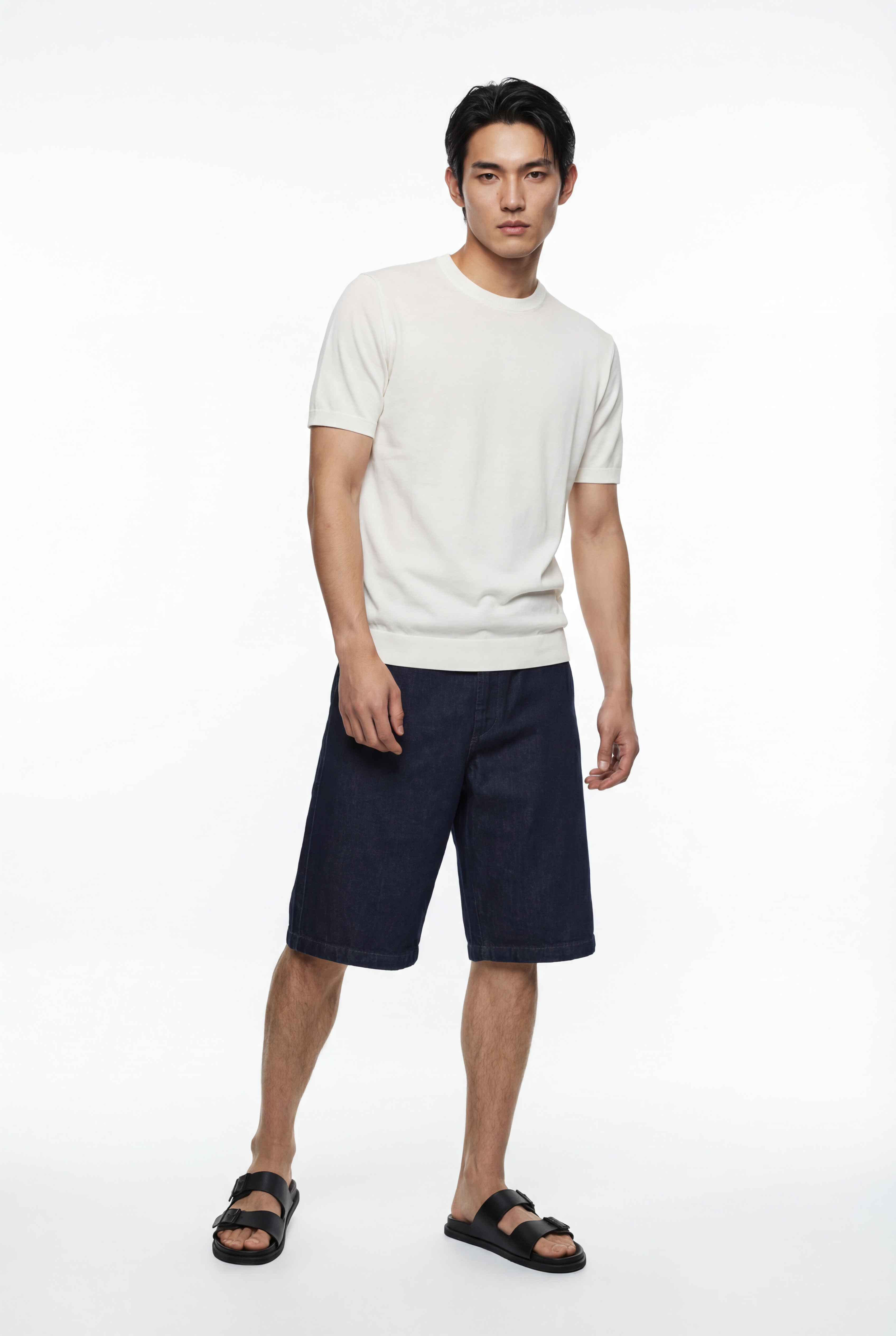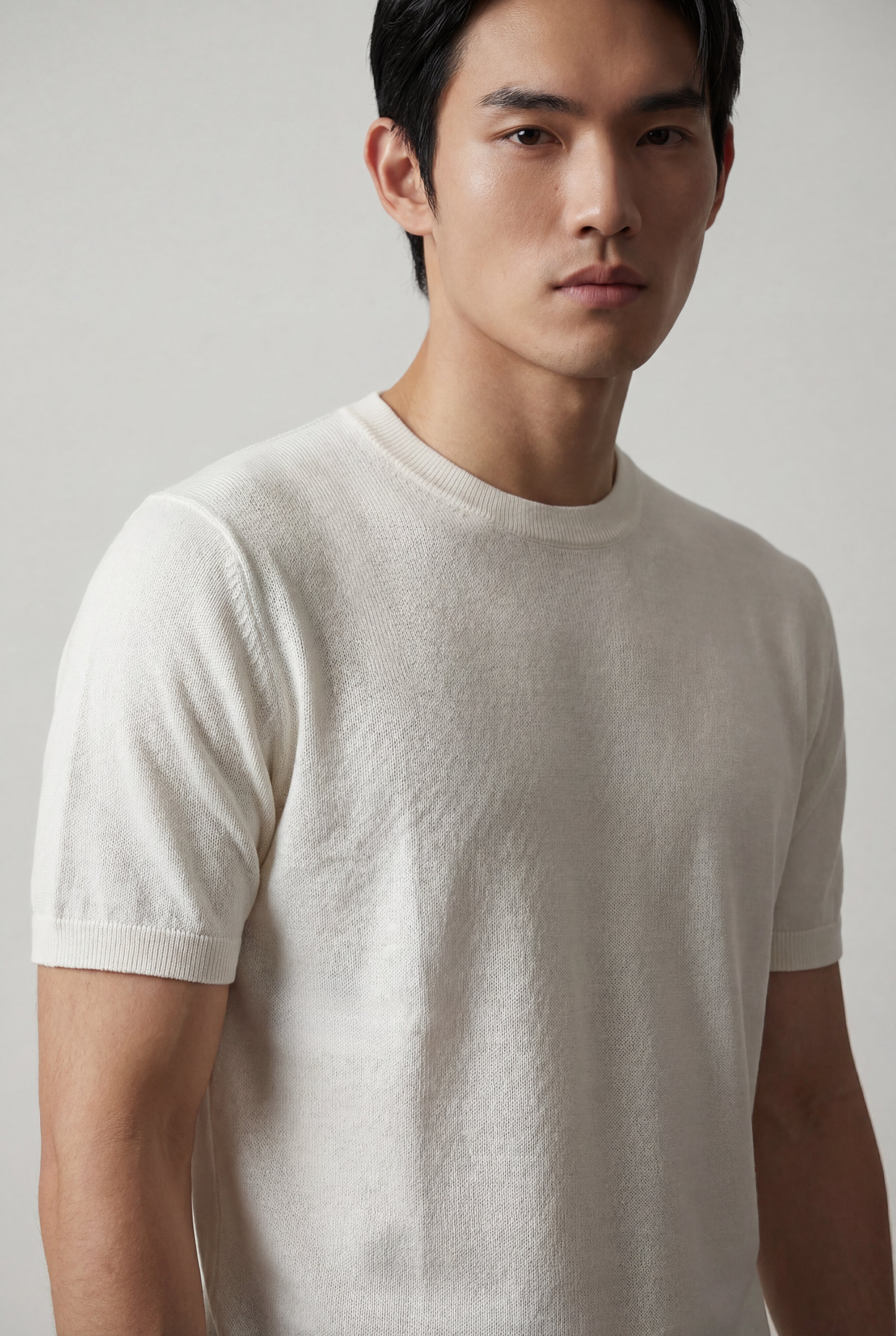 Maglia girocollo uomo manica corta in cotone crêpe leggero e traspirante