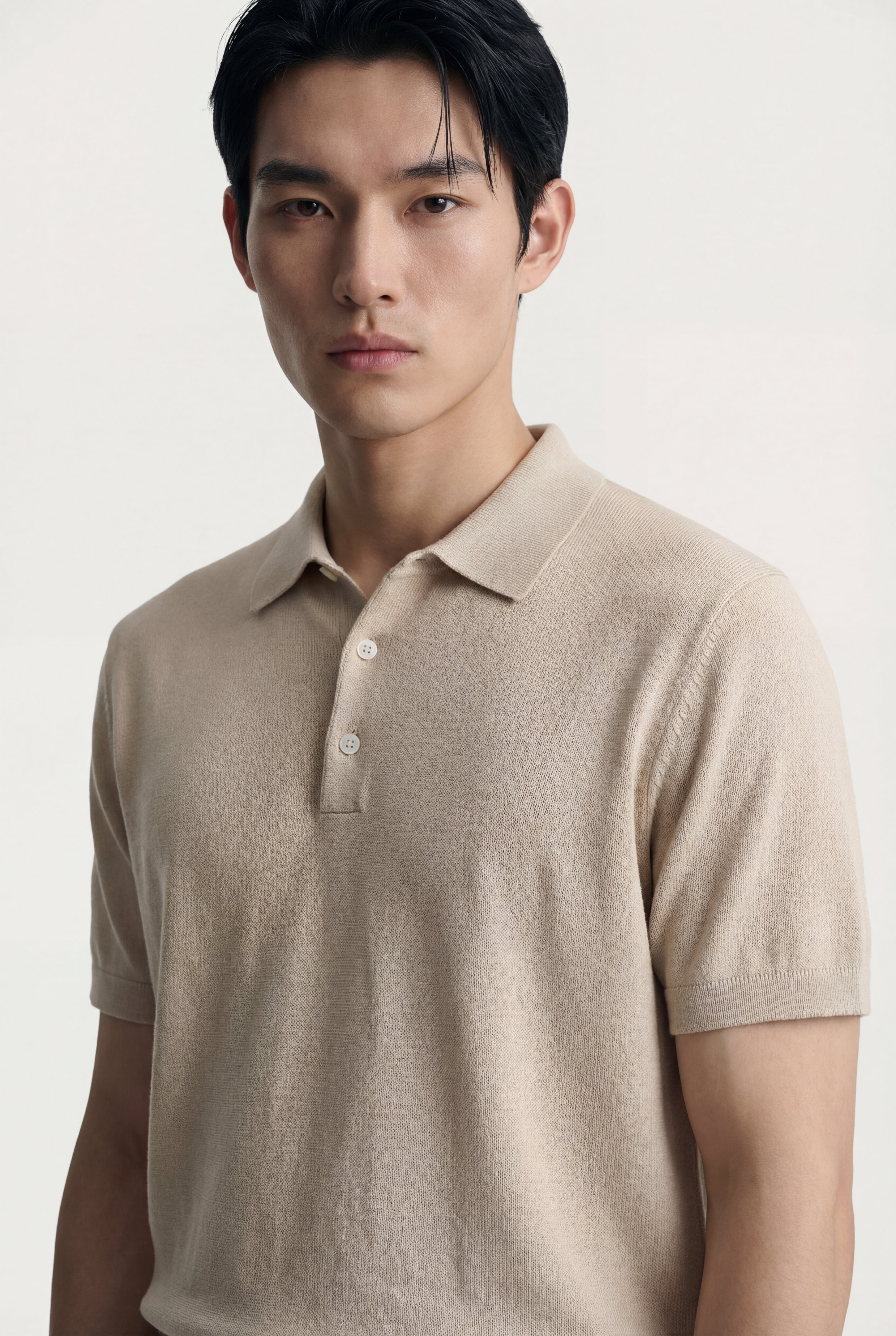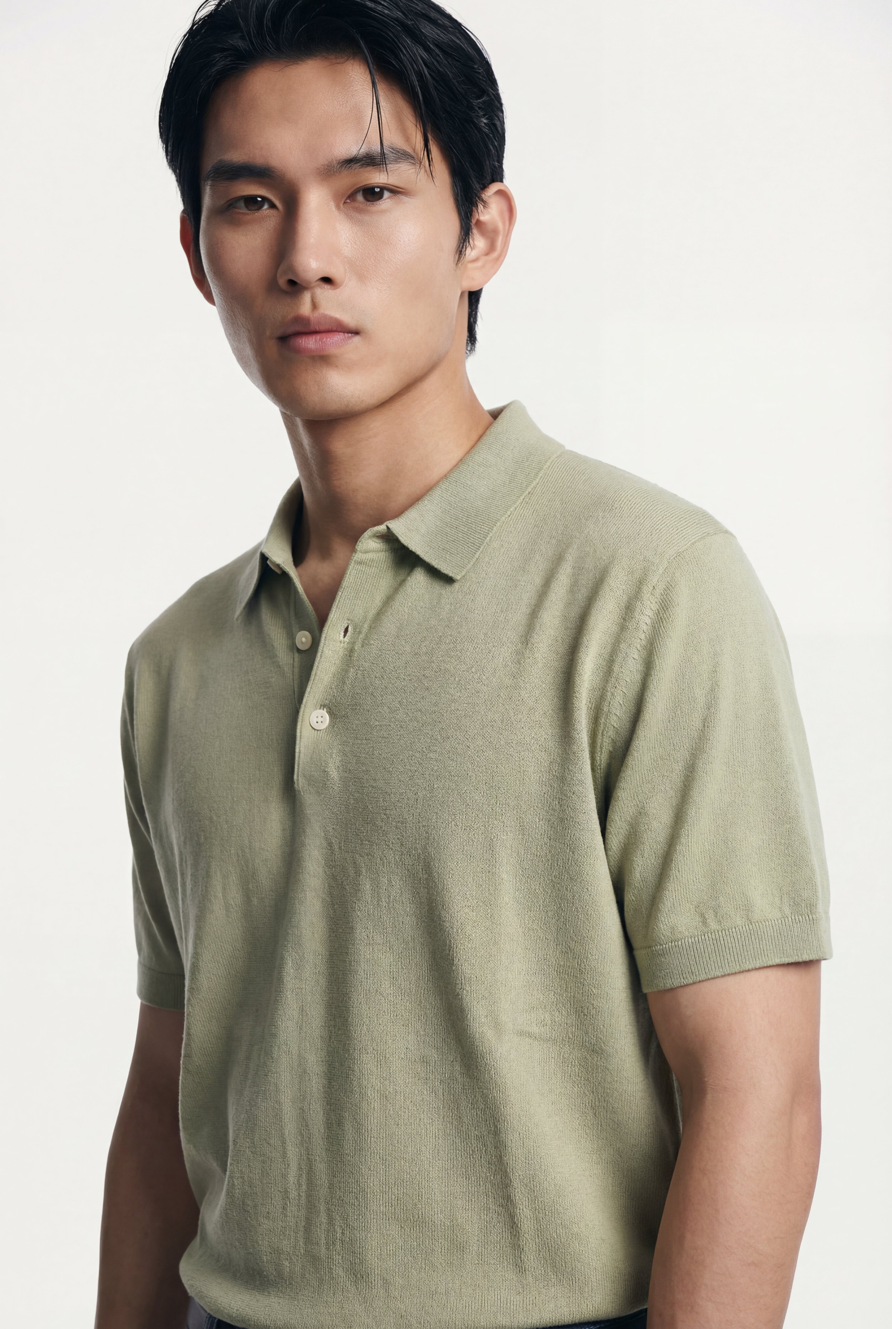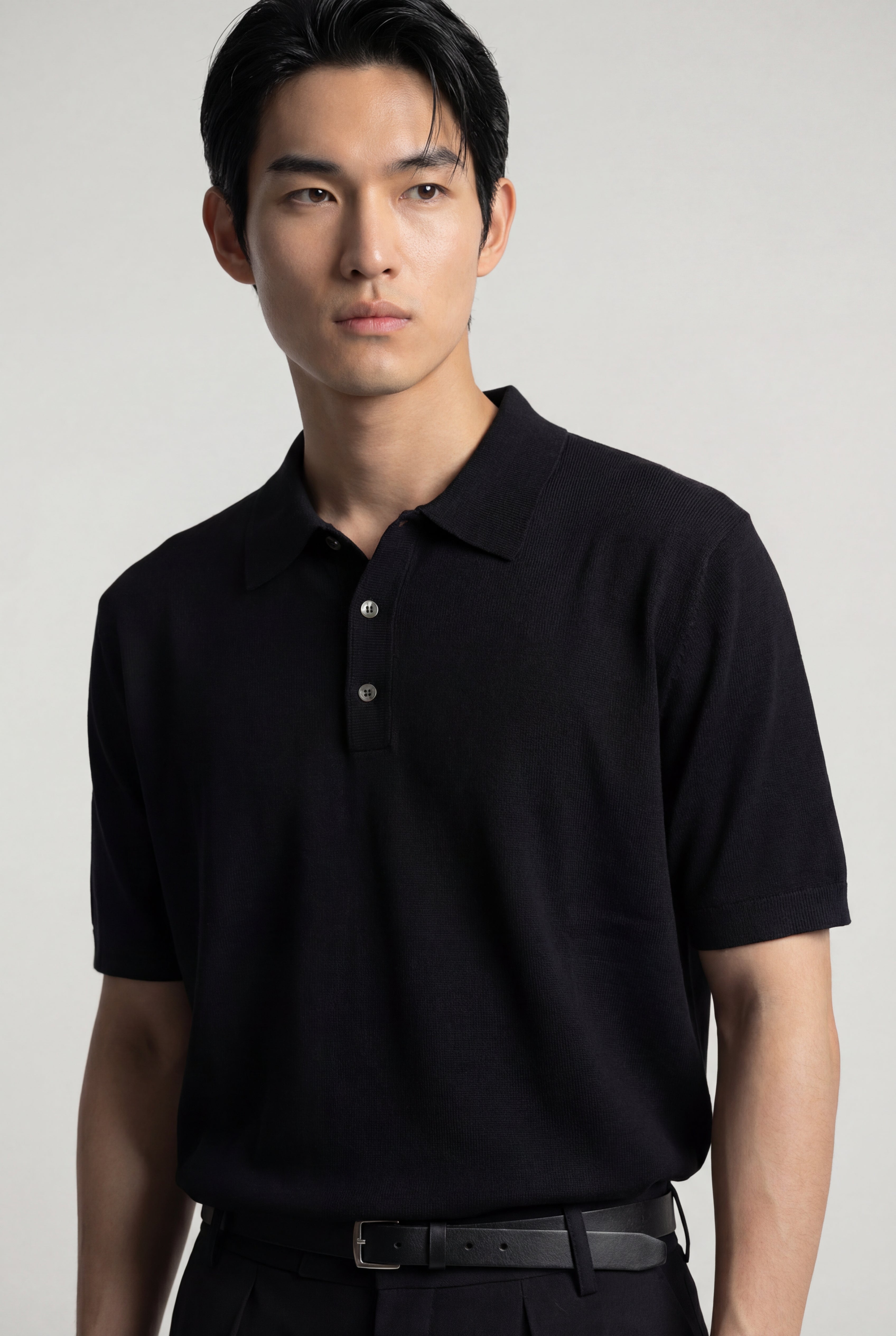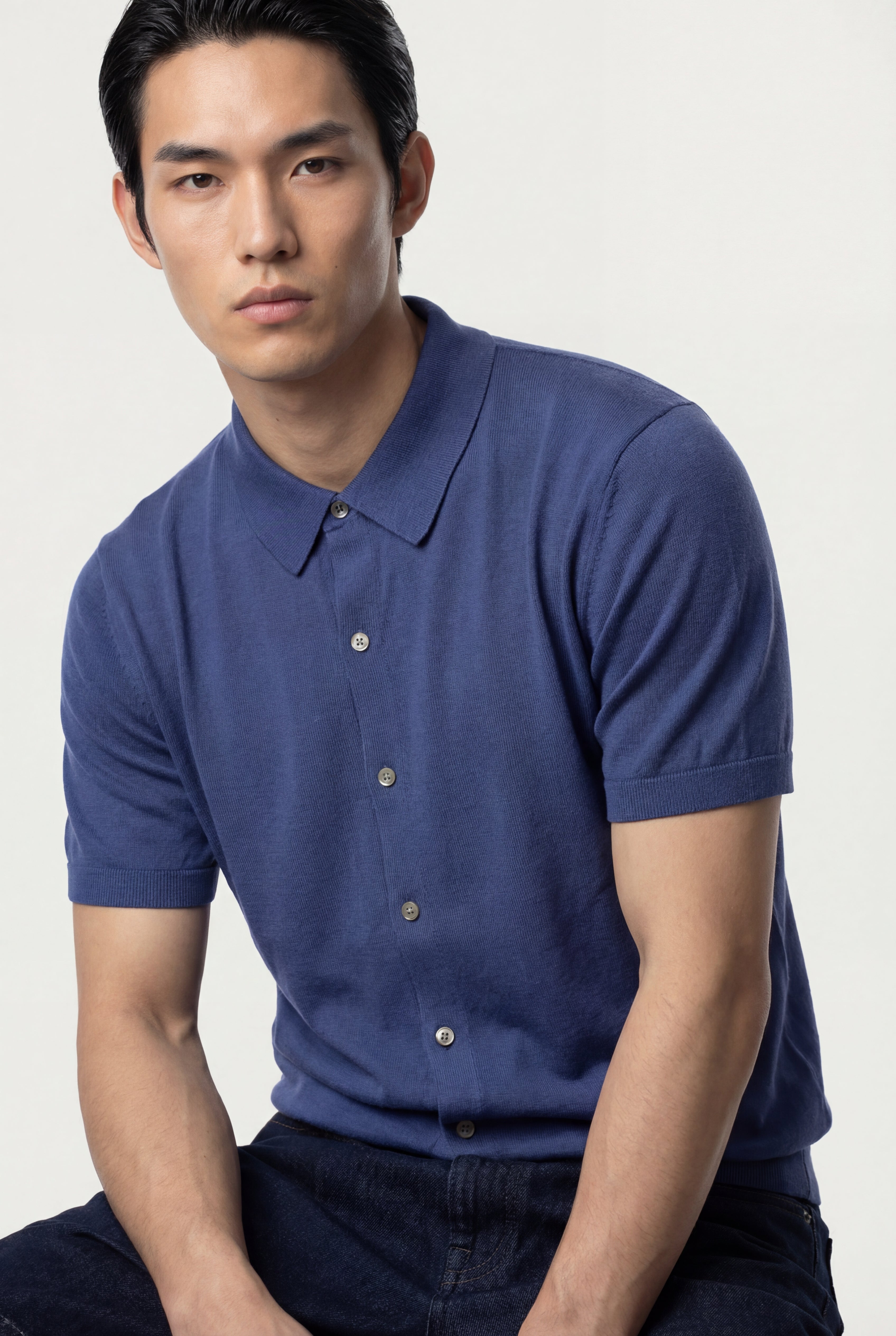 Maglia polo uomo manica corta in cotone crêpe senza bottoni, leggera e traspirante
