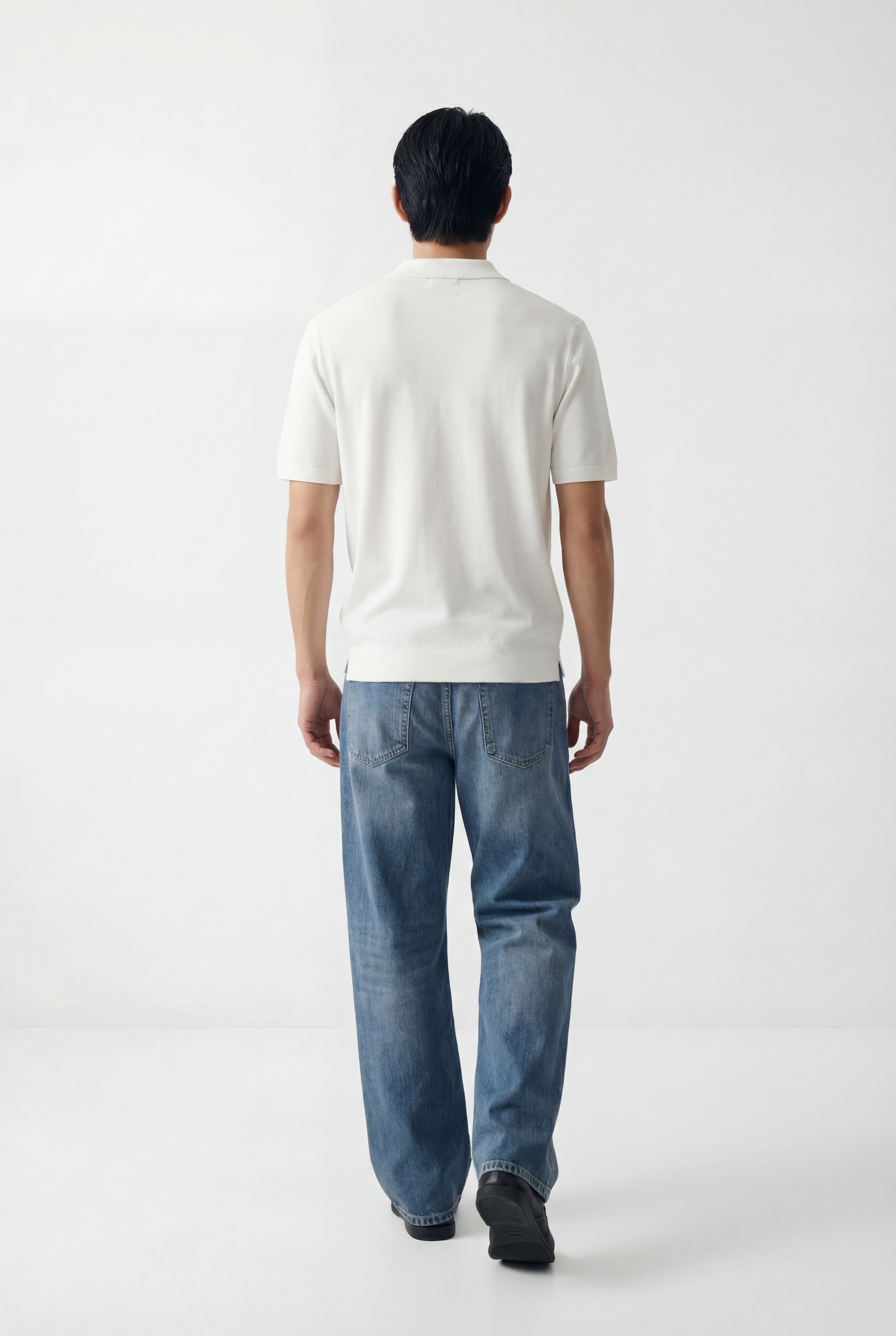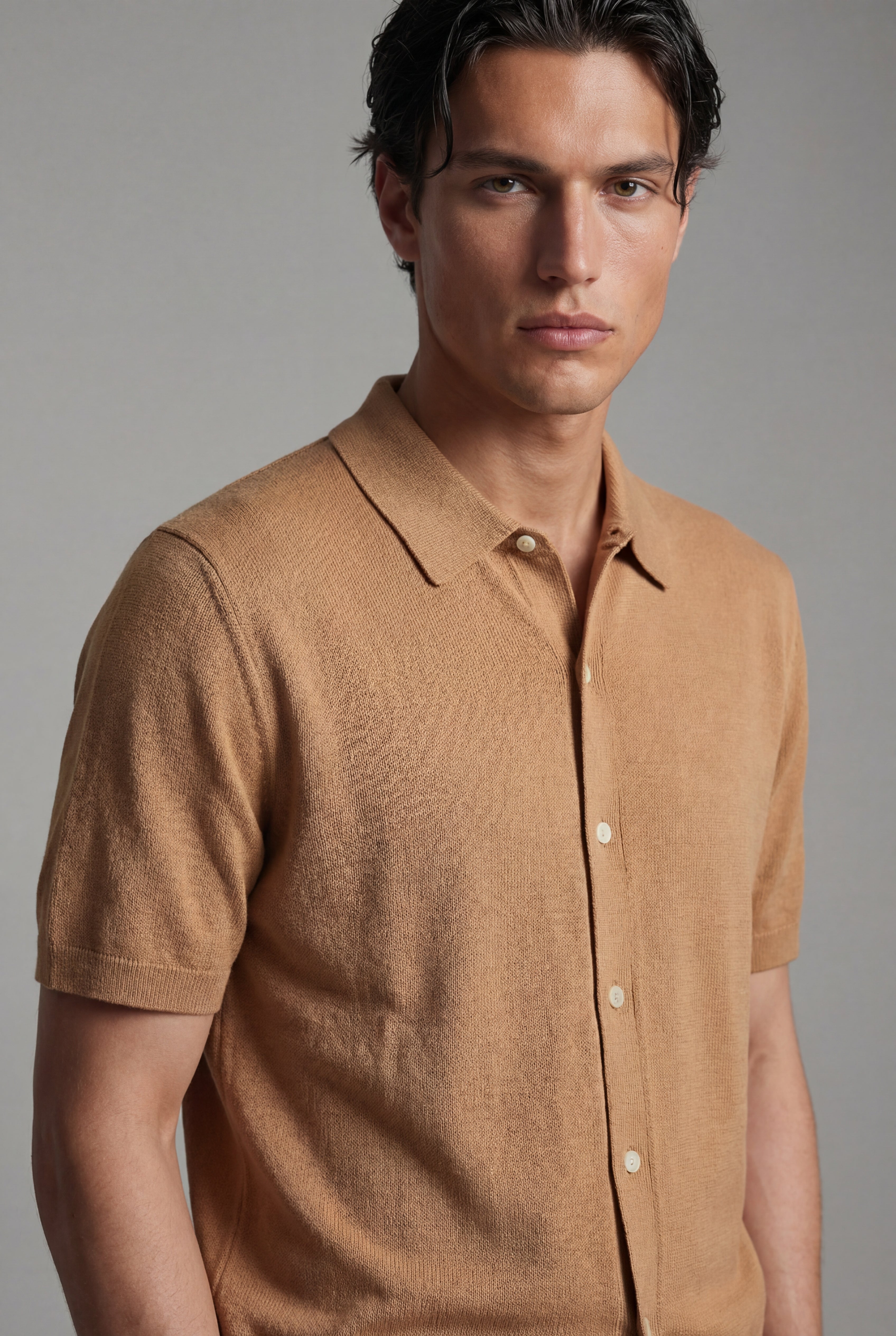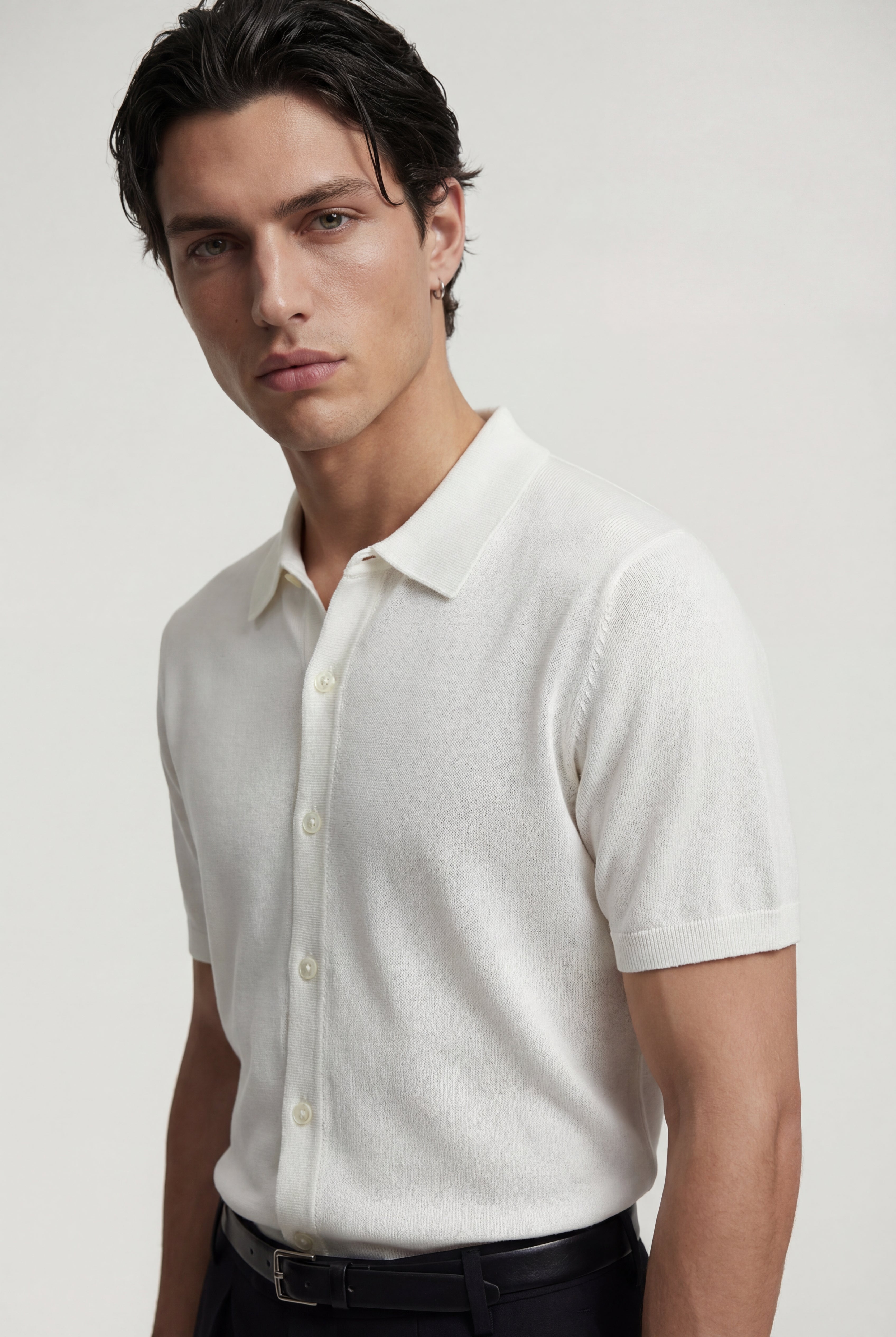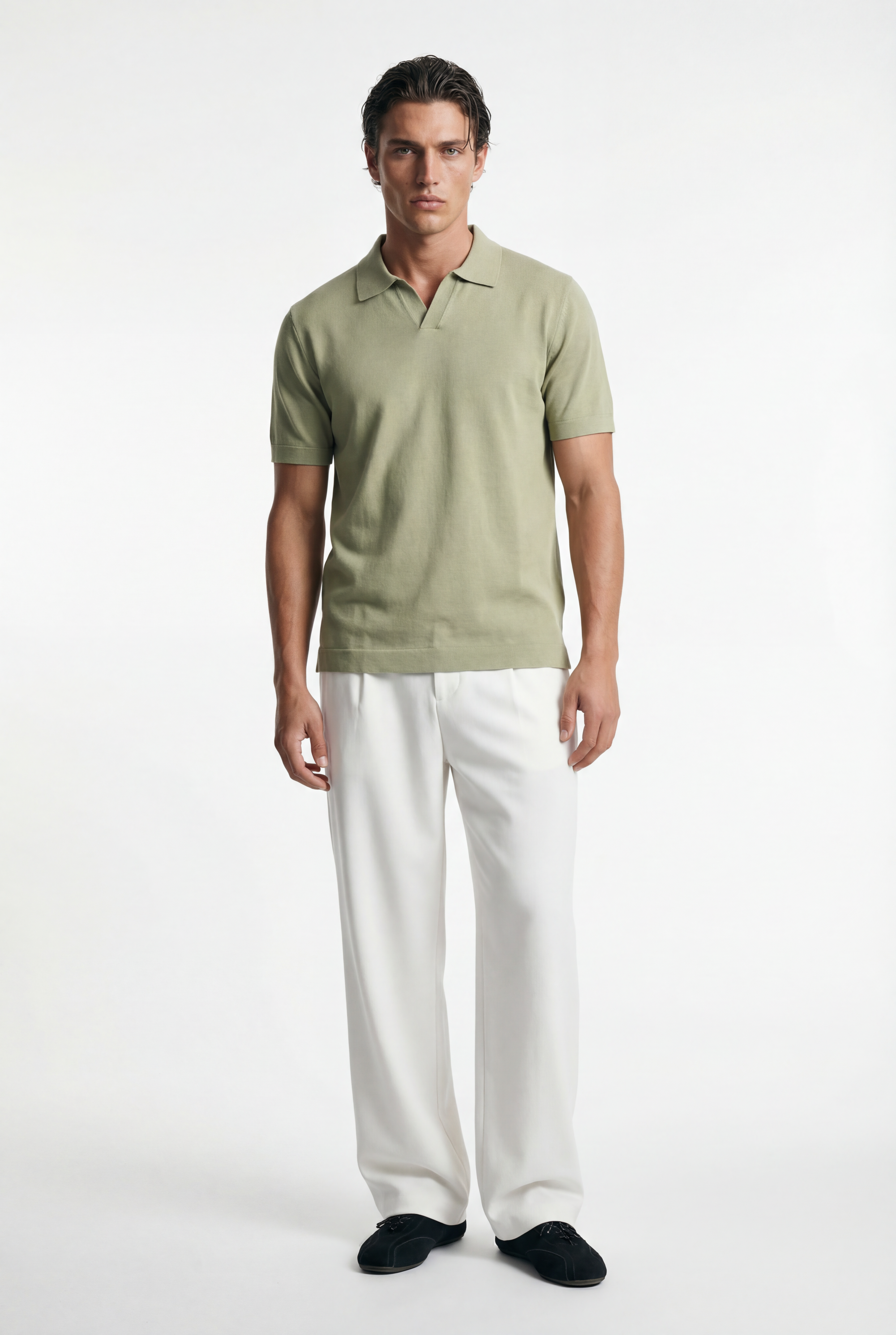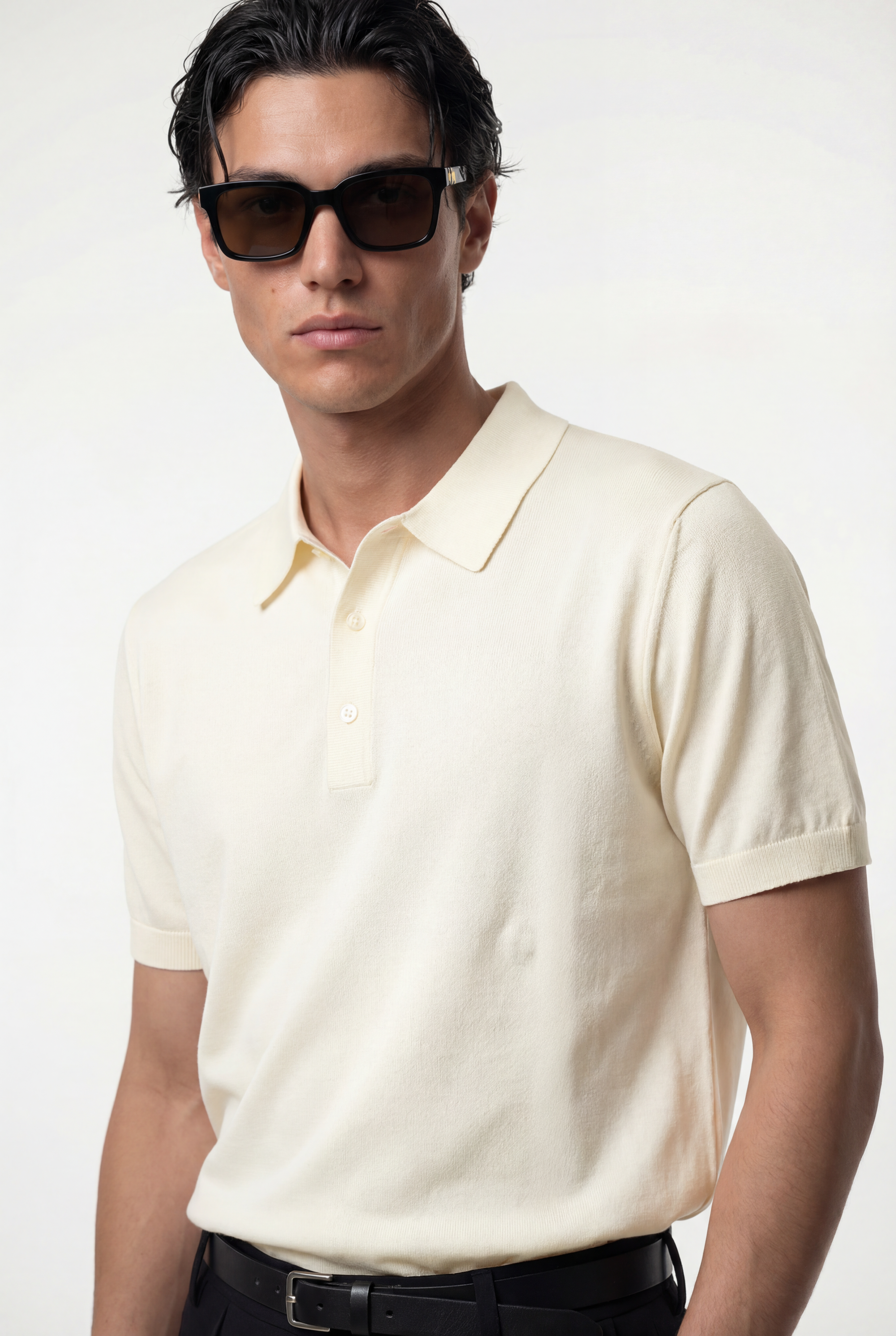 Maglia polo uomo manica corta in cotone crêpe senza bottoni, leggera e traspirante