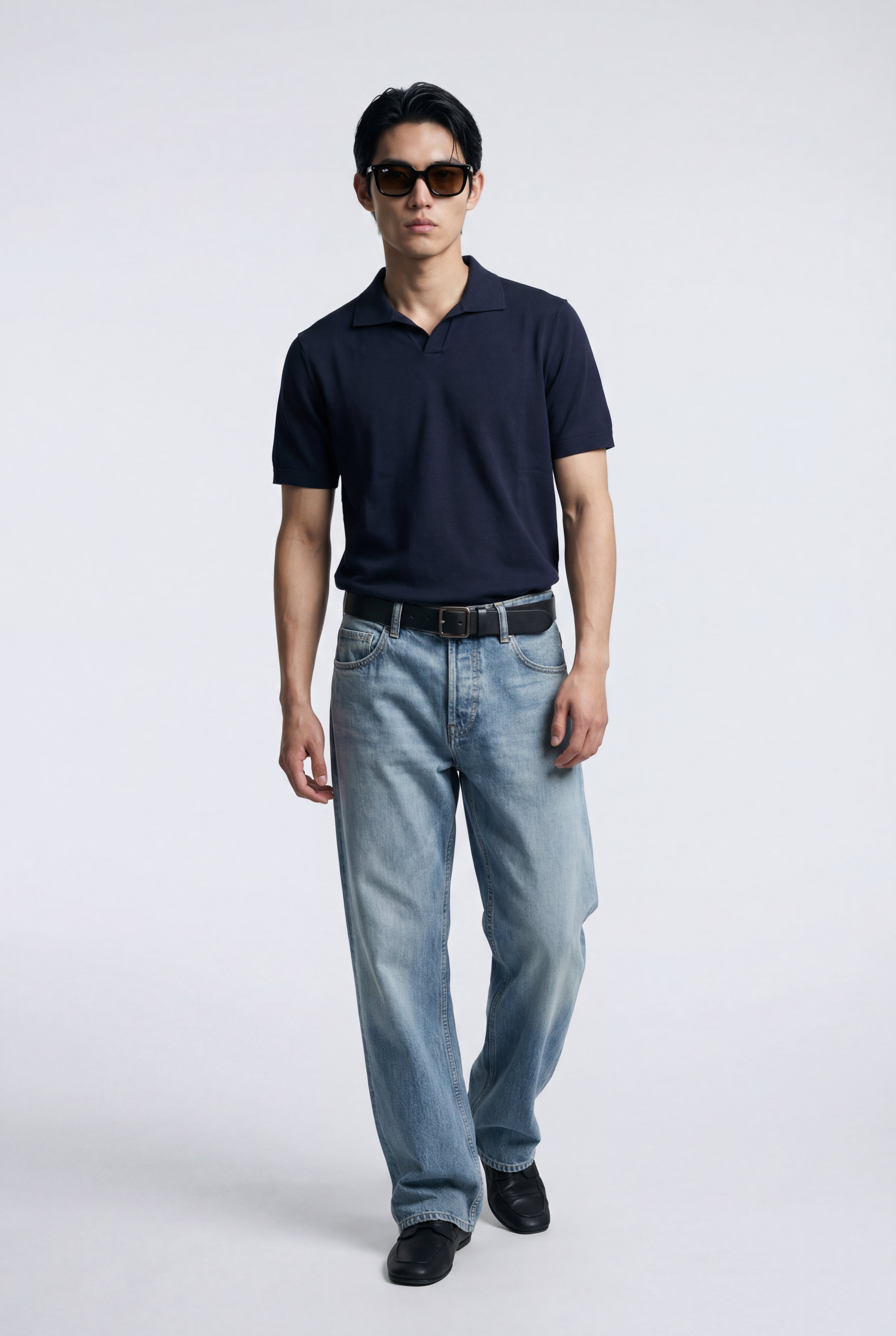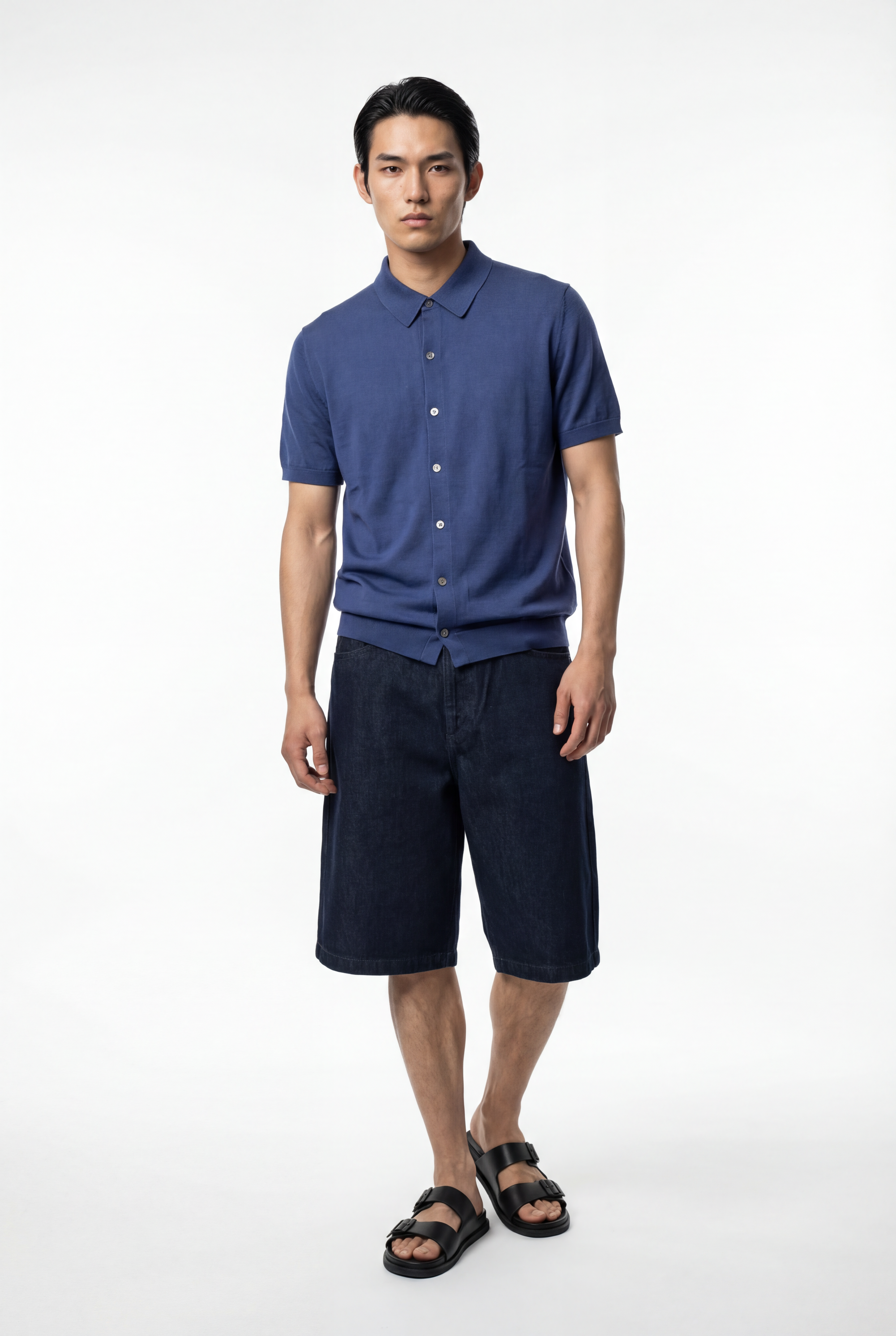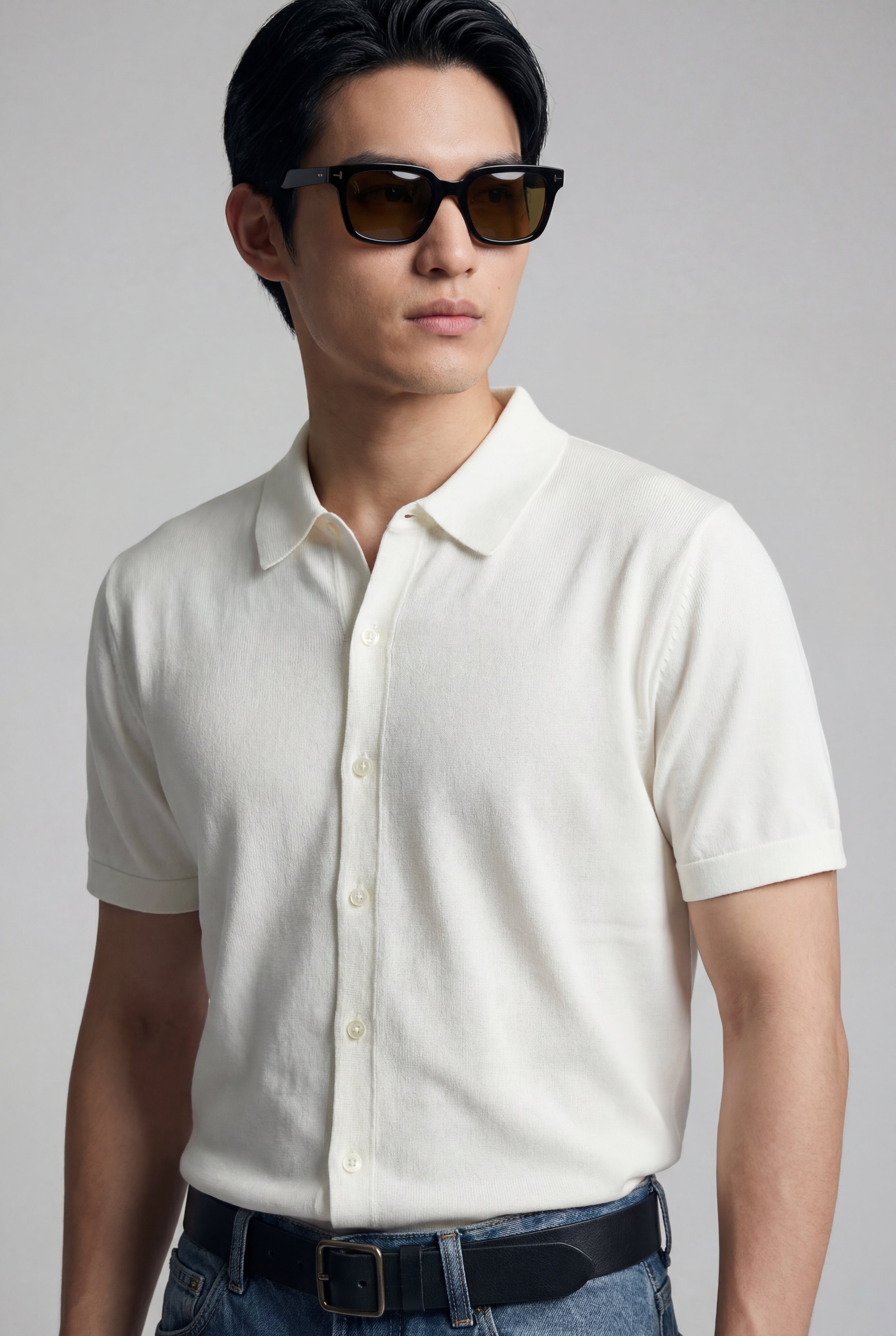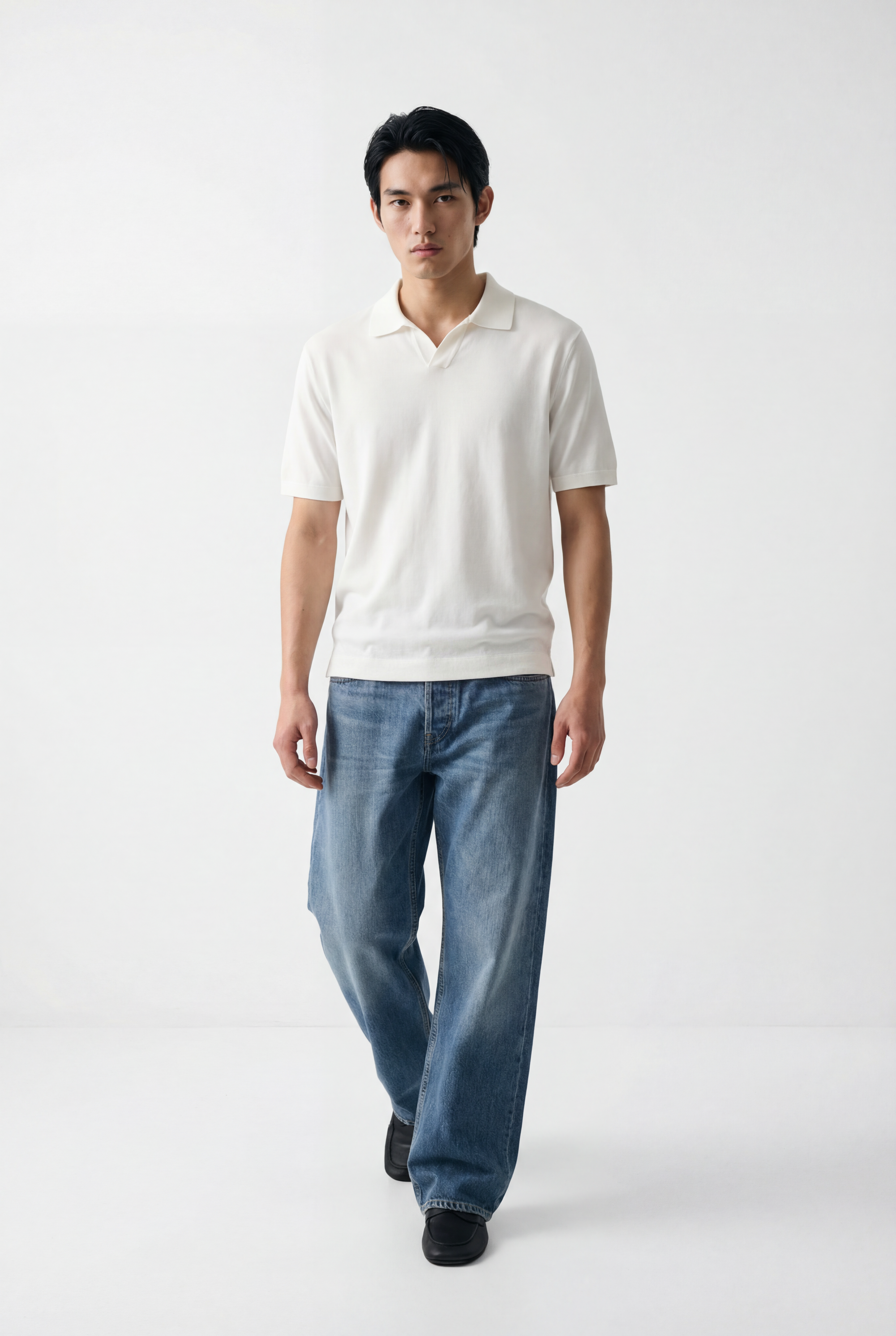 Maglia polo uomo manica corta in cotone crêpe senza bottoni, leggera e traspirante