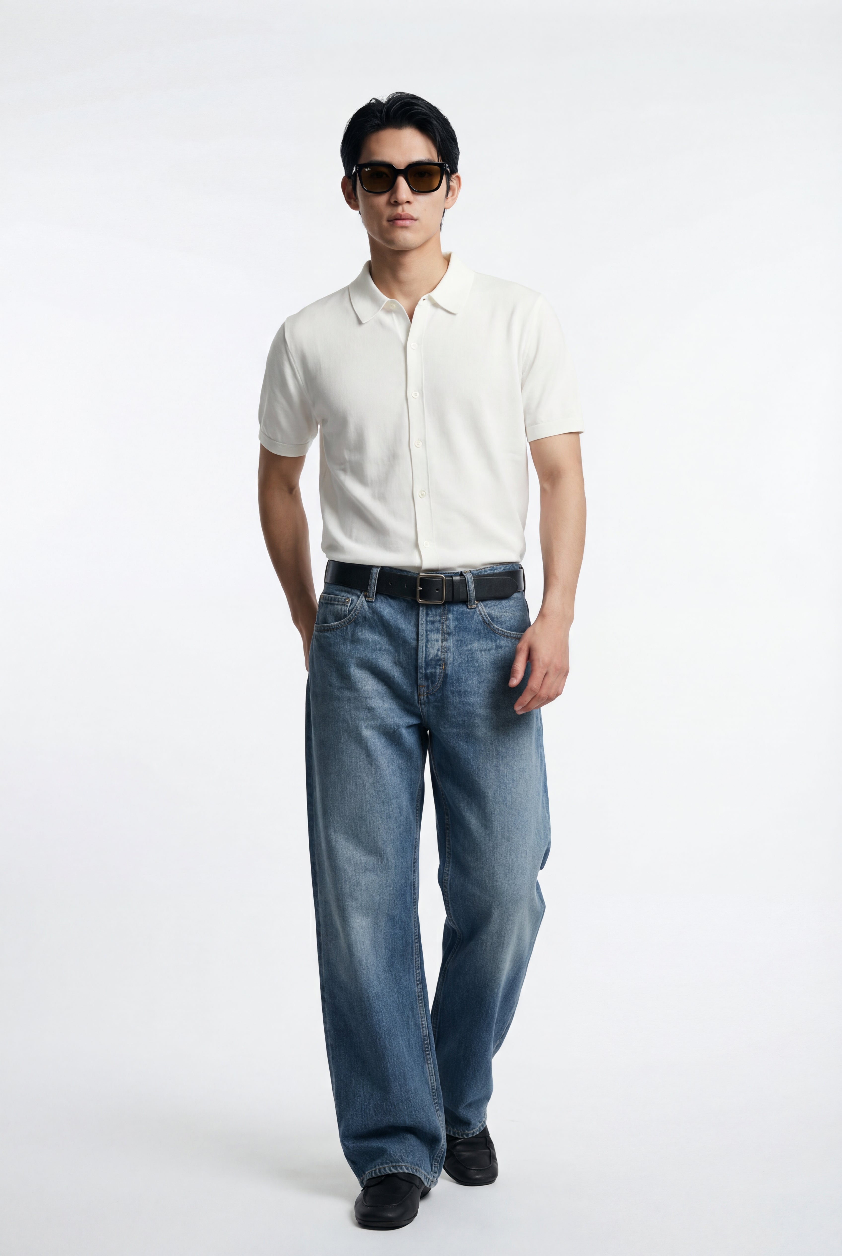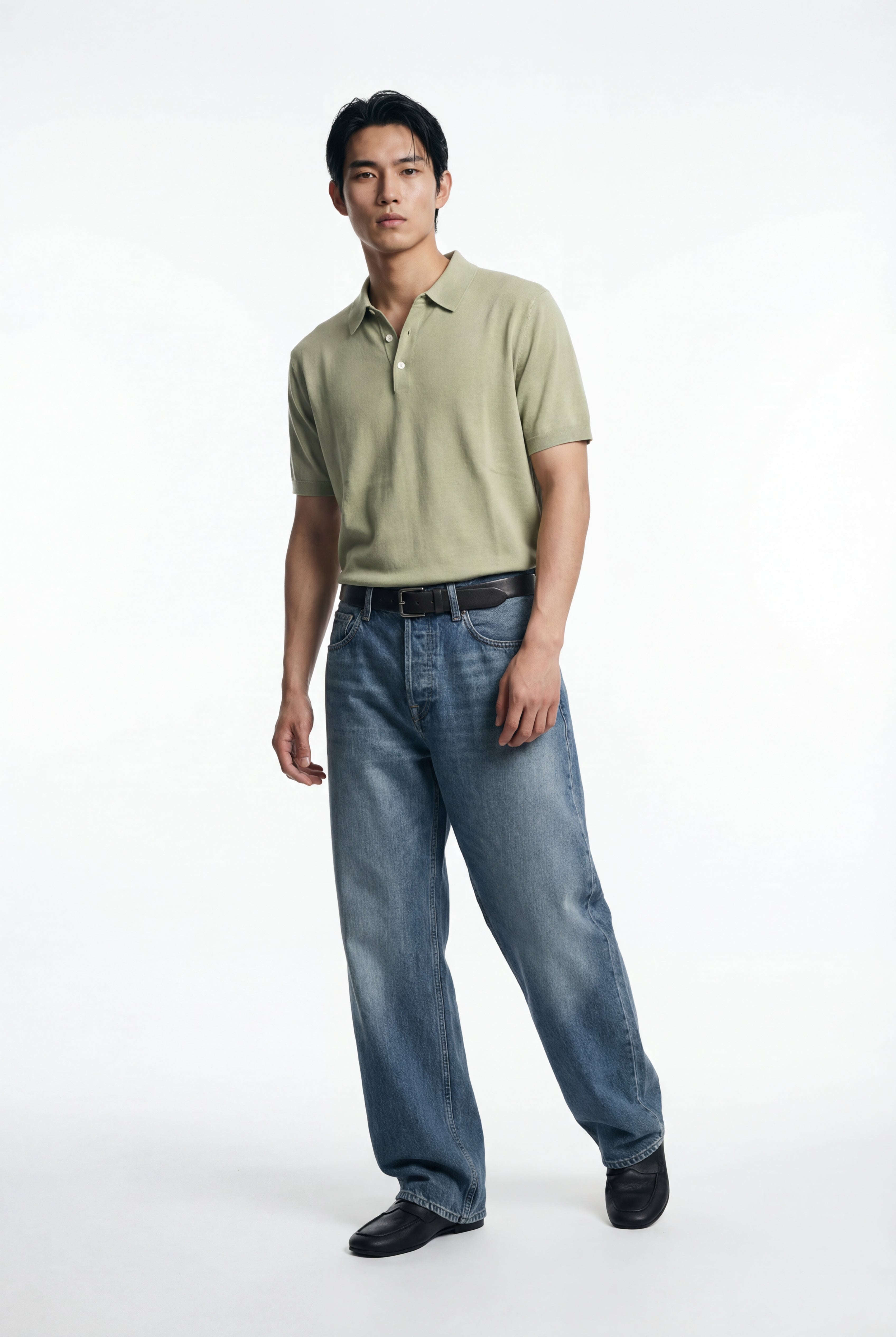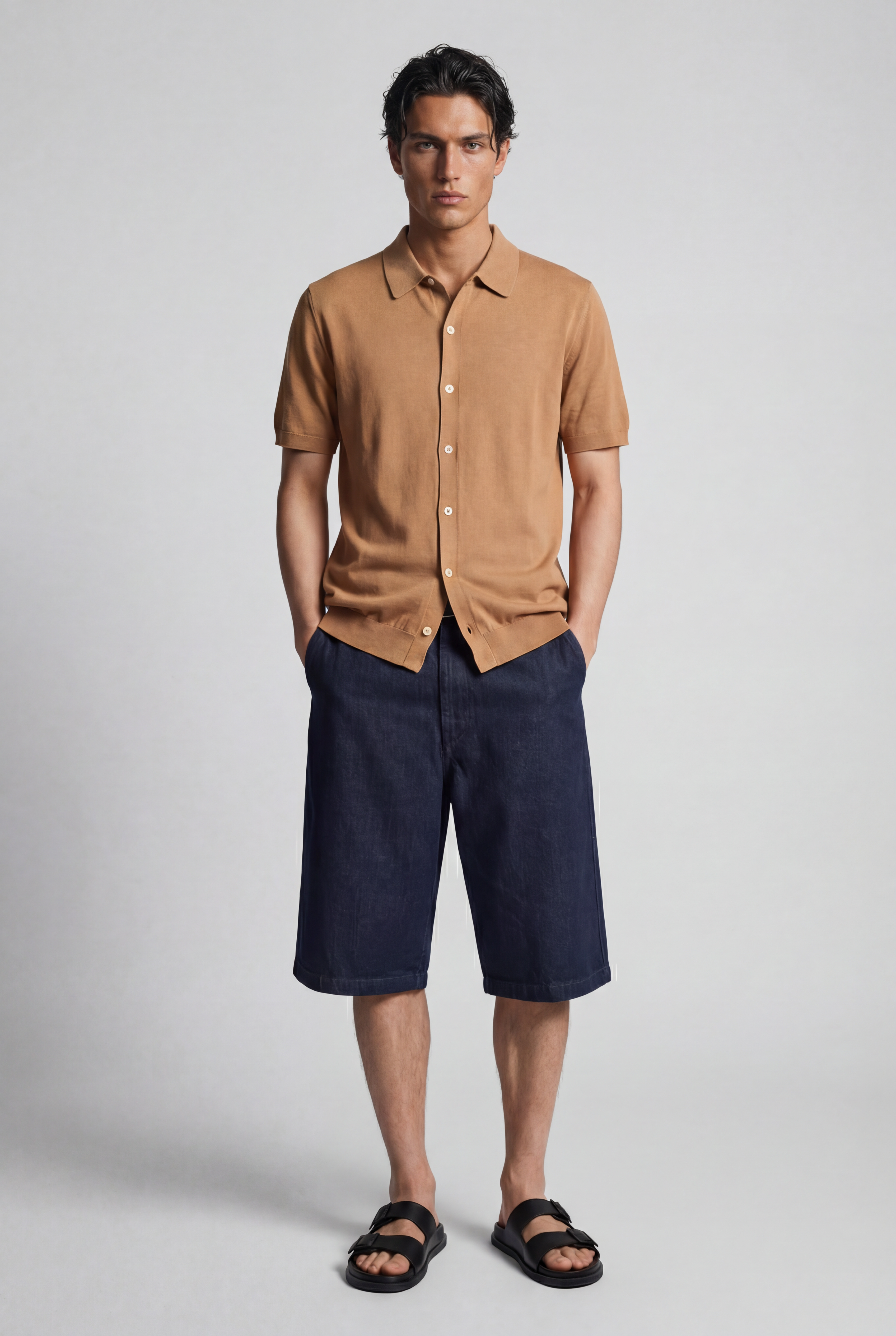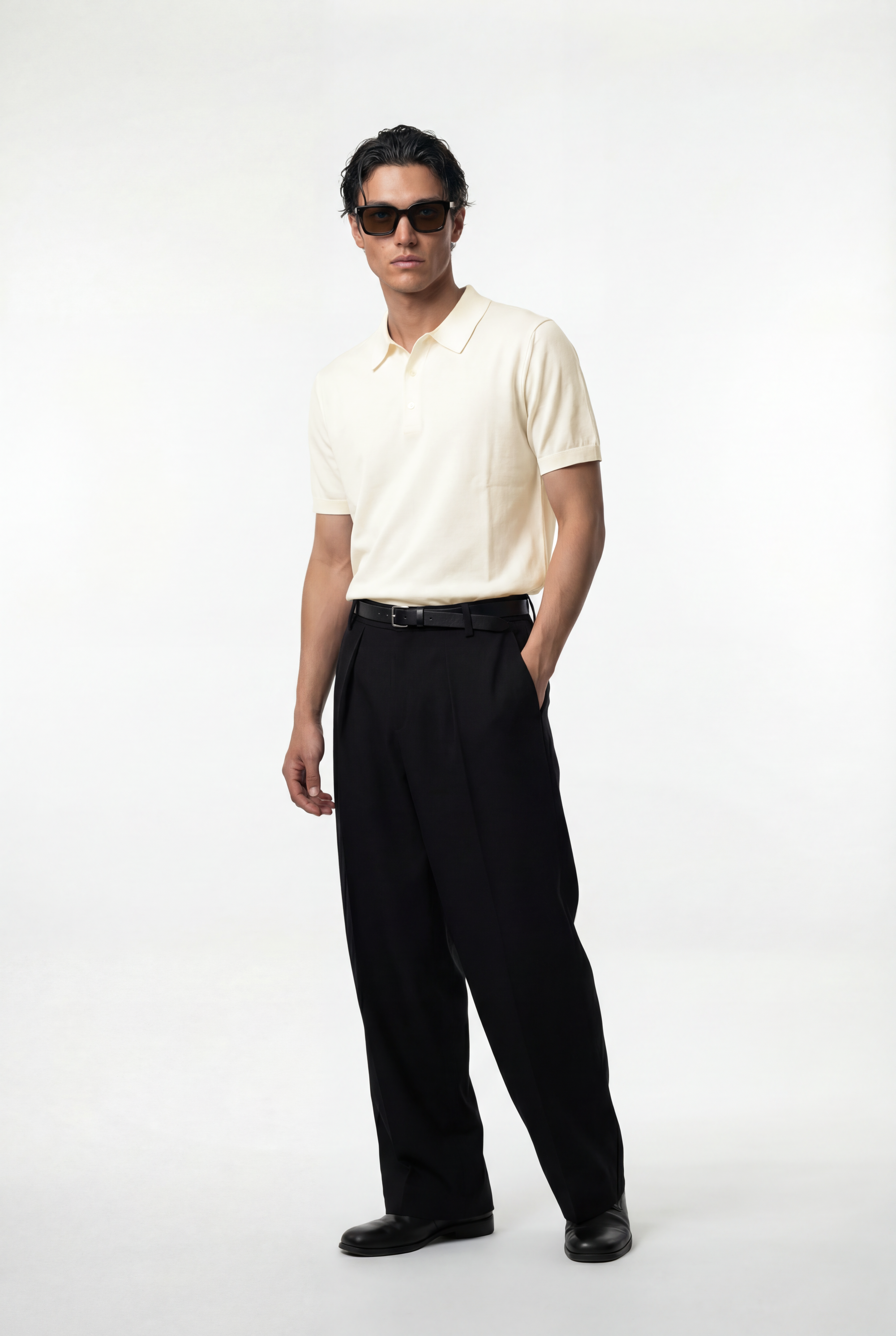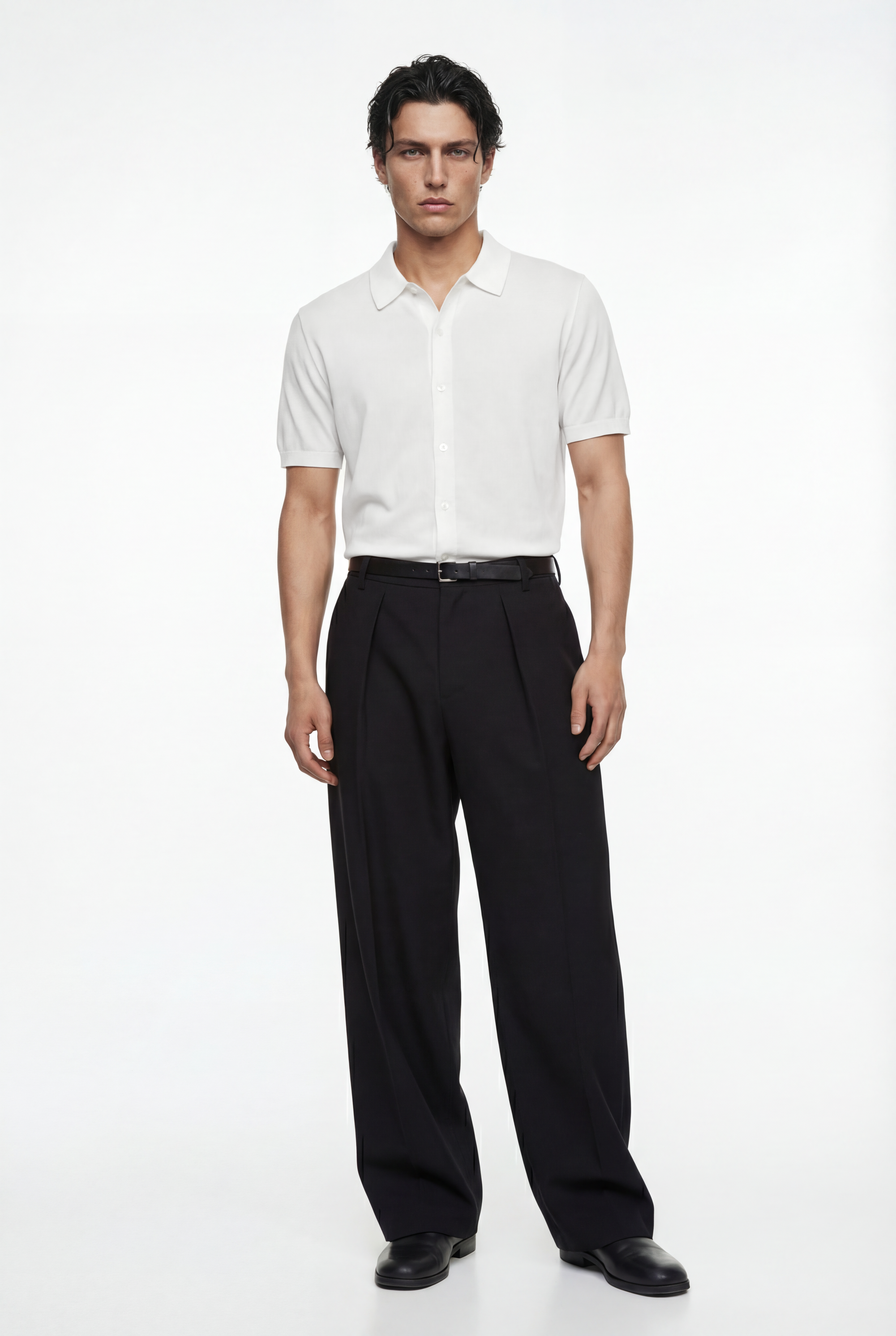 Maglia polo uomo manica corta in cotone crêpe senza bottoni, leggera e traspirante