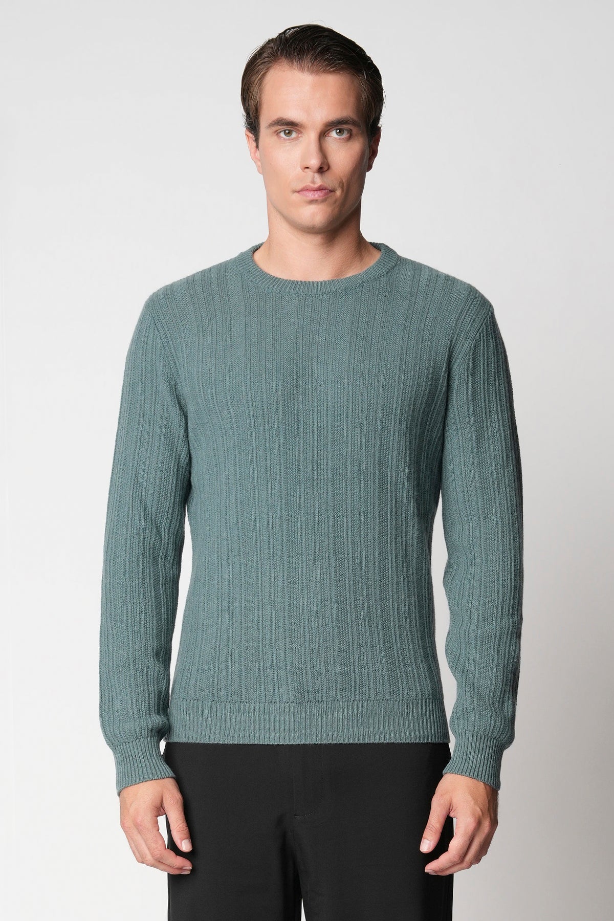 Light blue crewneck in multicolor wool blend yarn fin.3