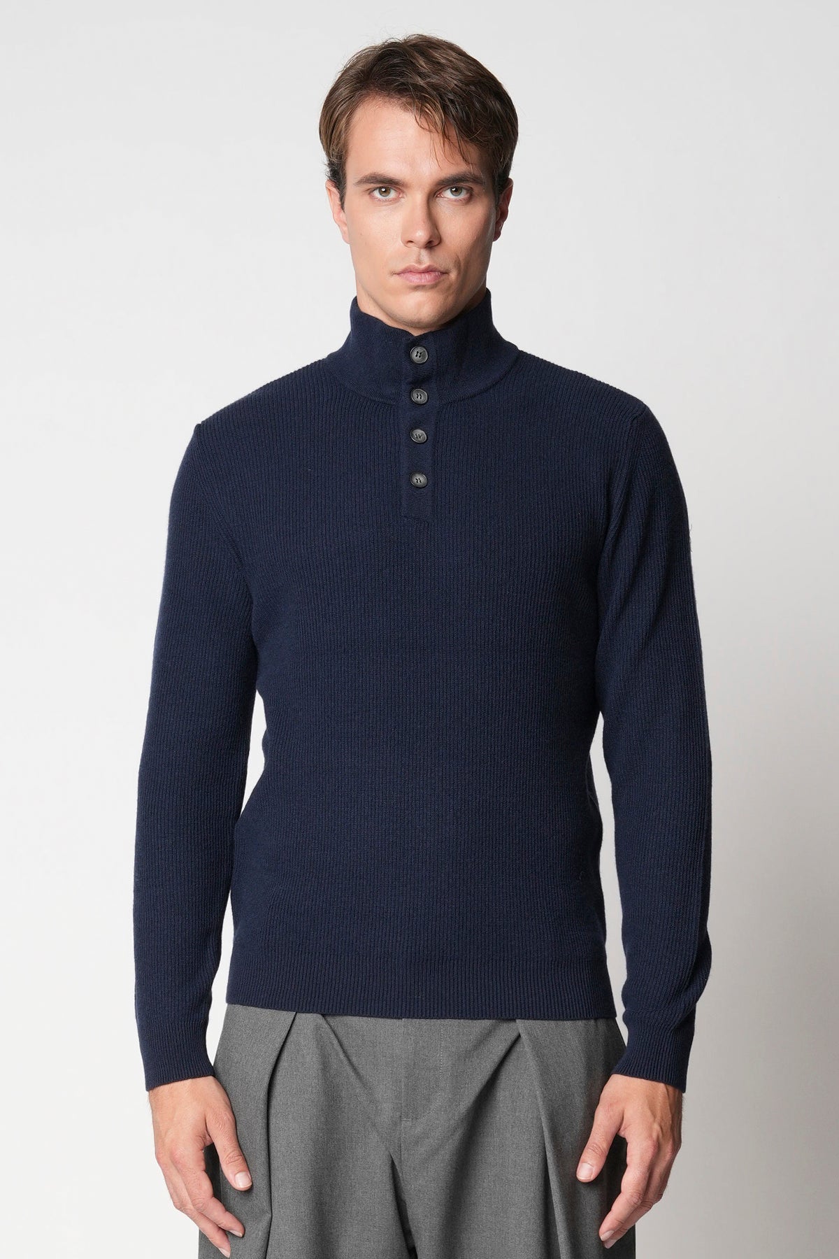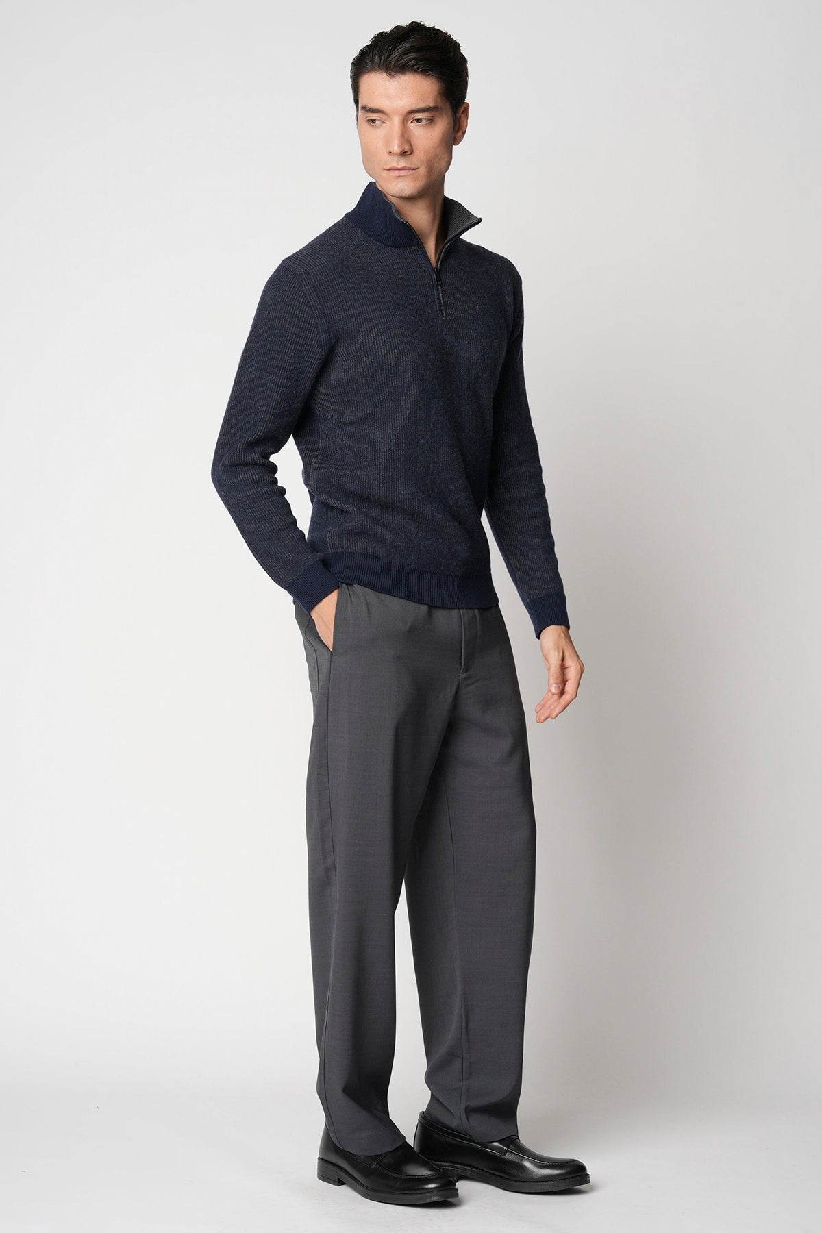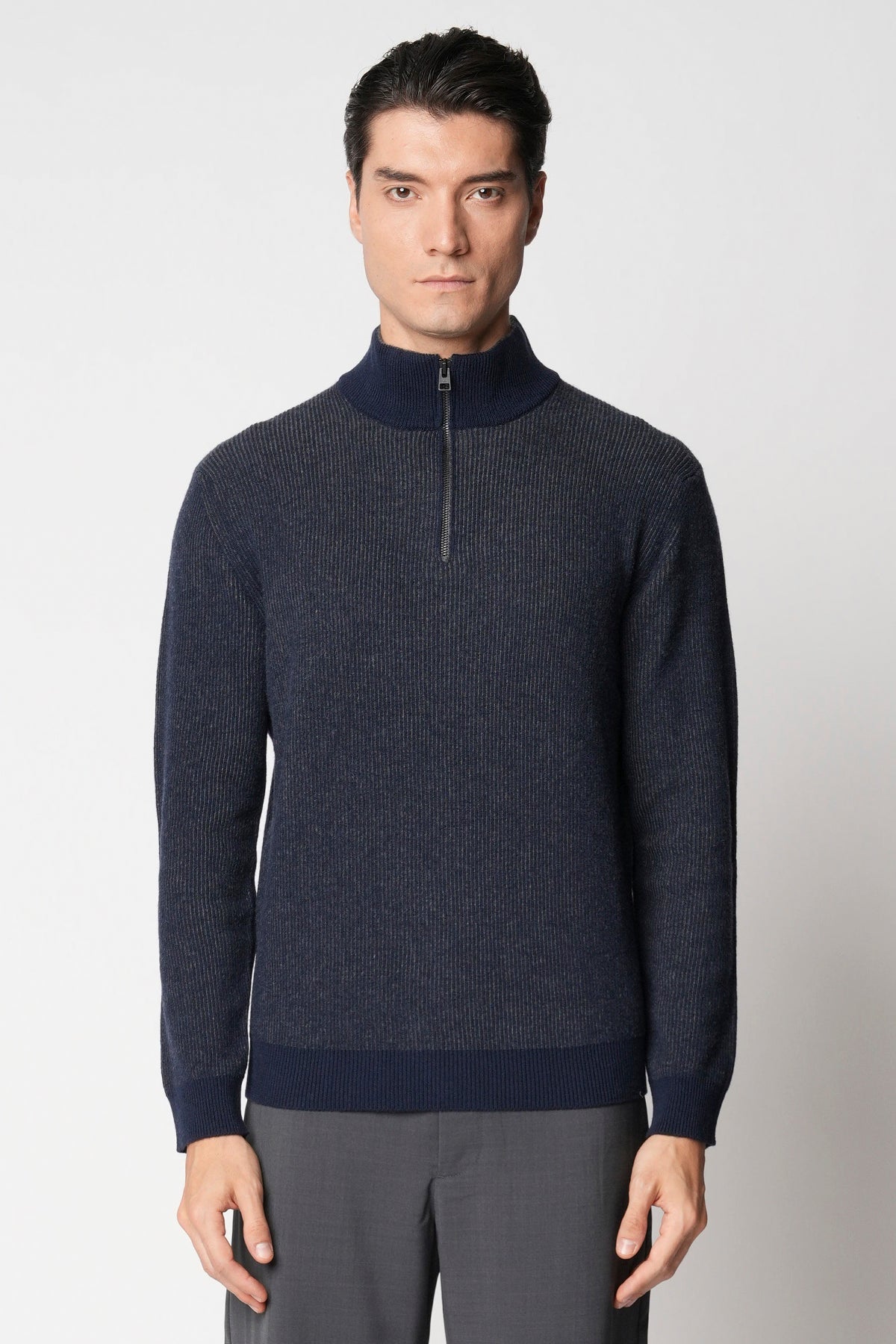 Extrafine Merino Wool Zip-Up Jacket - Dark Blue