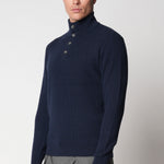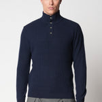 Made in our mill in Tuscany, this extrafine merino wool and cashmere yarn stands out for its exceptional softness and smoothness. The cable and rib knit add structure and sophistication, enhancing the quality of the yarn and the artisanal craftsmanship.