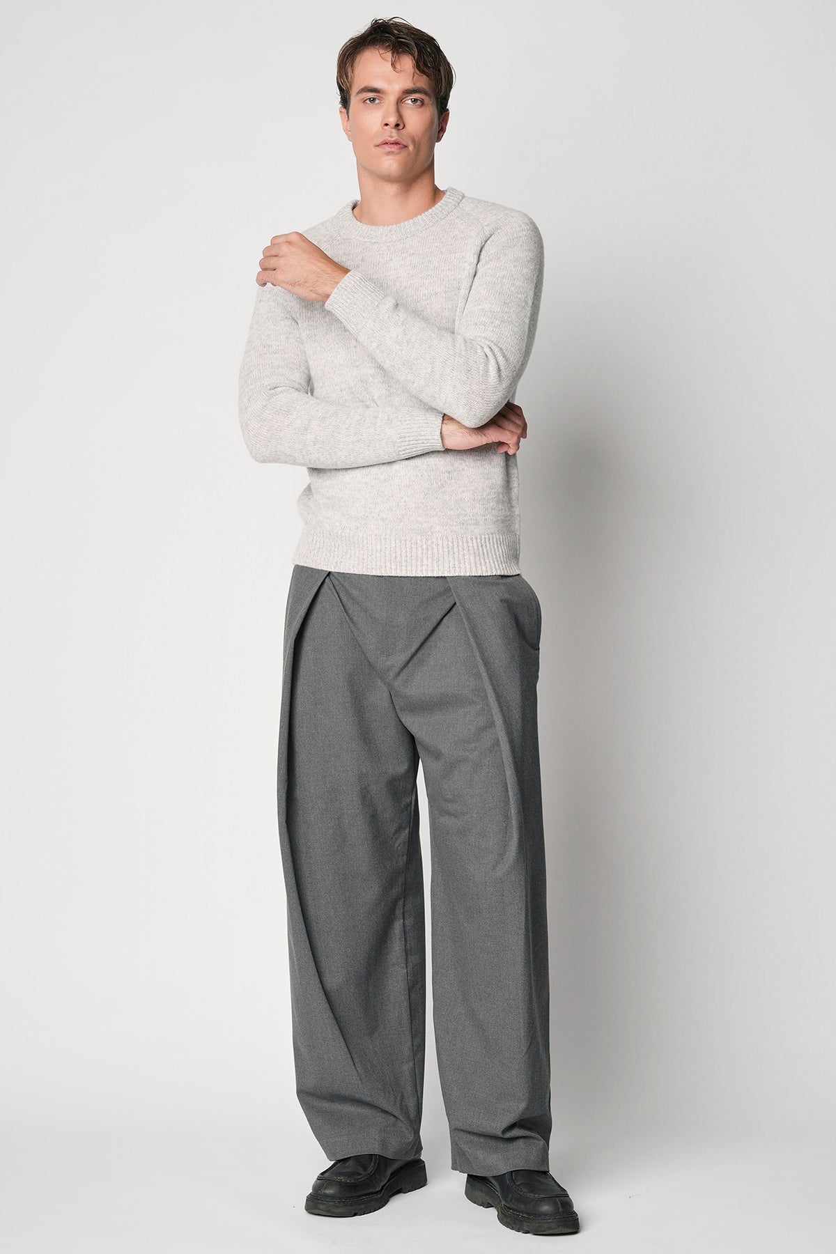 Girocollo jacquard grigio in lana merino extrafine fin.12 LTD ED