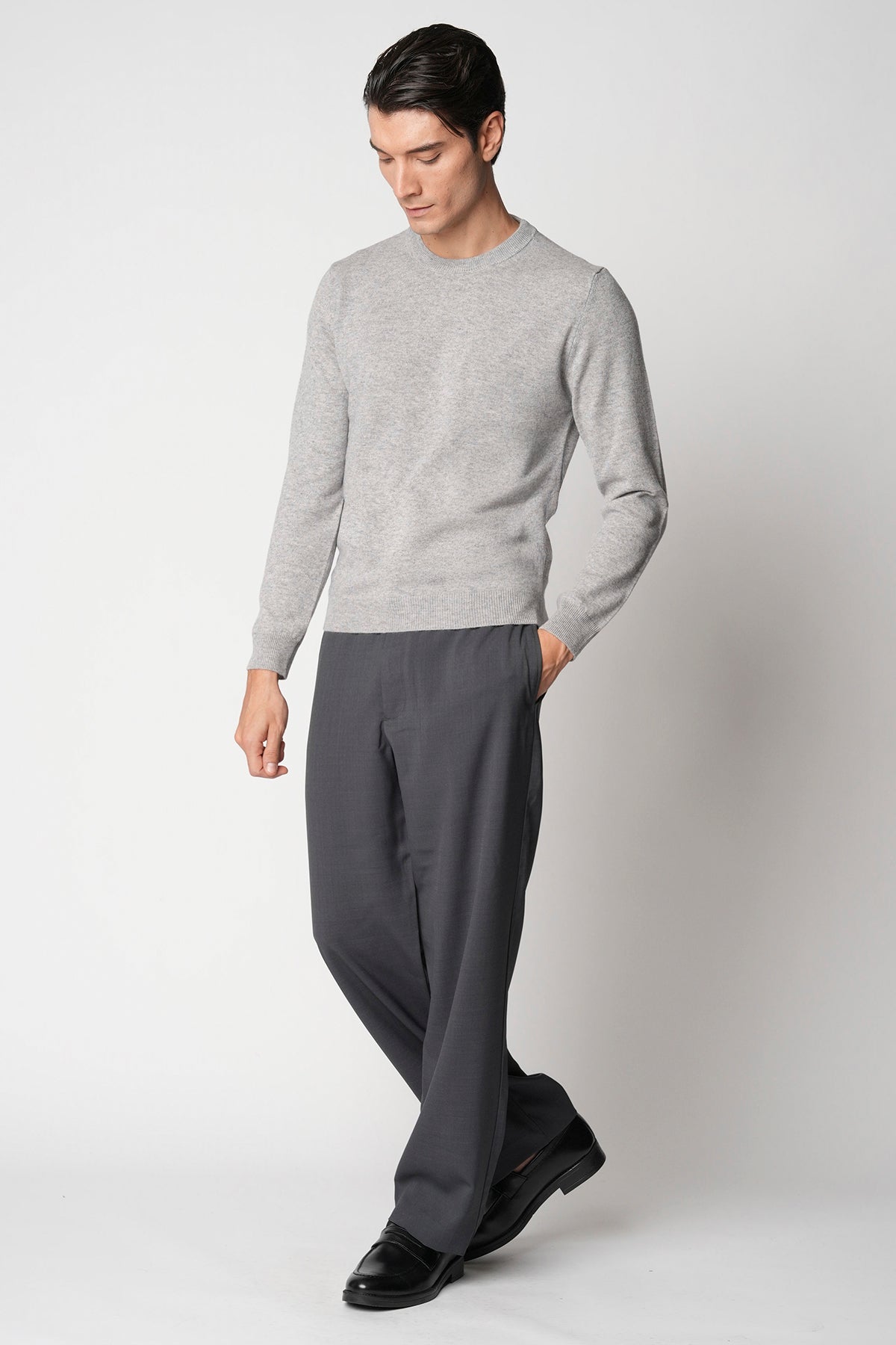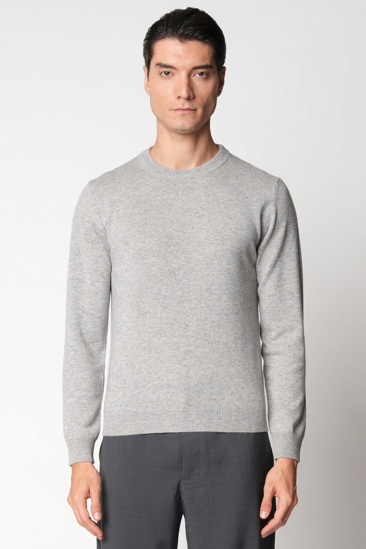 Girocollo grigio jacquard bicolore in lana e cashmere fin.12