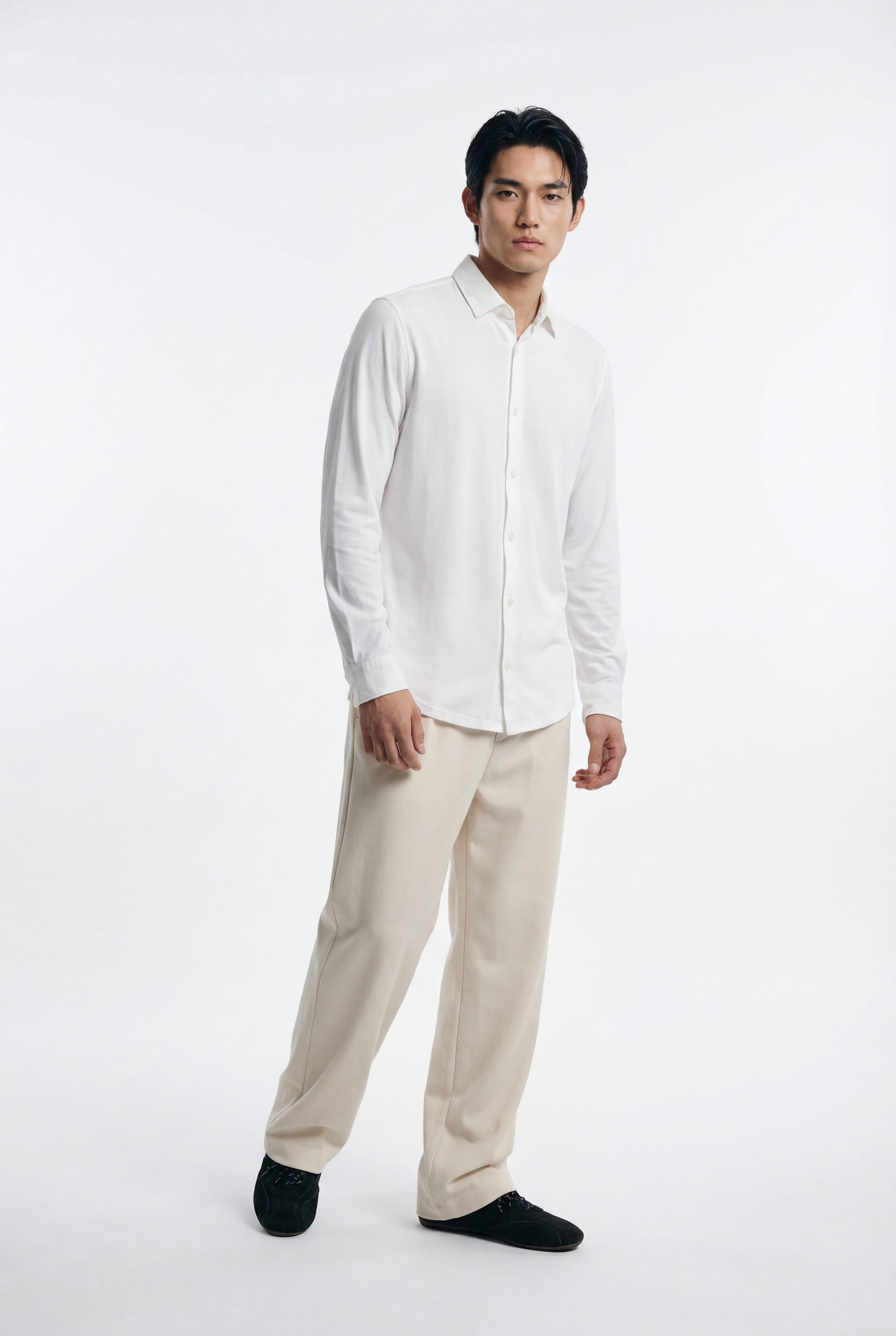 Questa camicia uomo in jersey si distingue per il suo stile pulito e contemporaneo, perfetto per creare outfit casual uomo o look smart casual. Può essere indossata sia con jeans e sneakers per un look rilassato, sia con pantaloni più eleganti per occasioni informali.