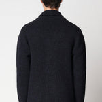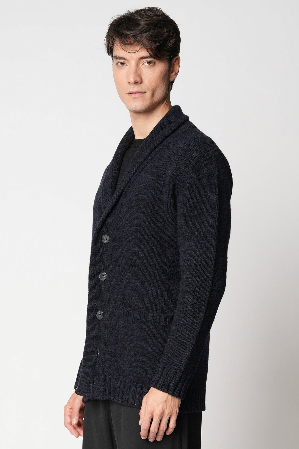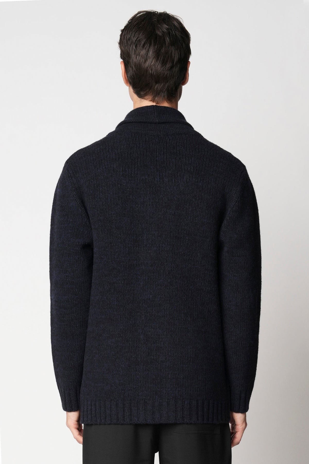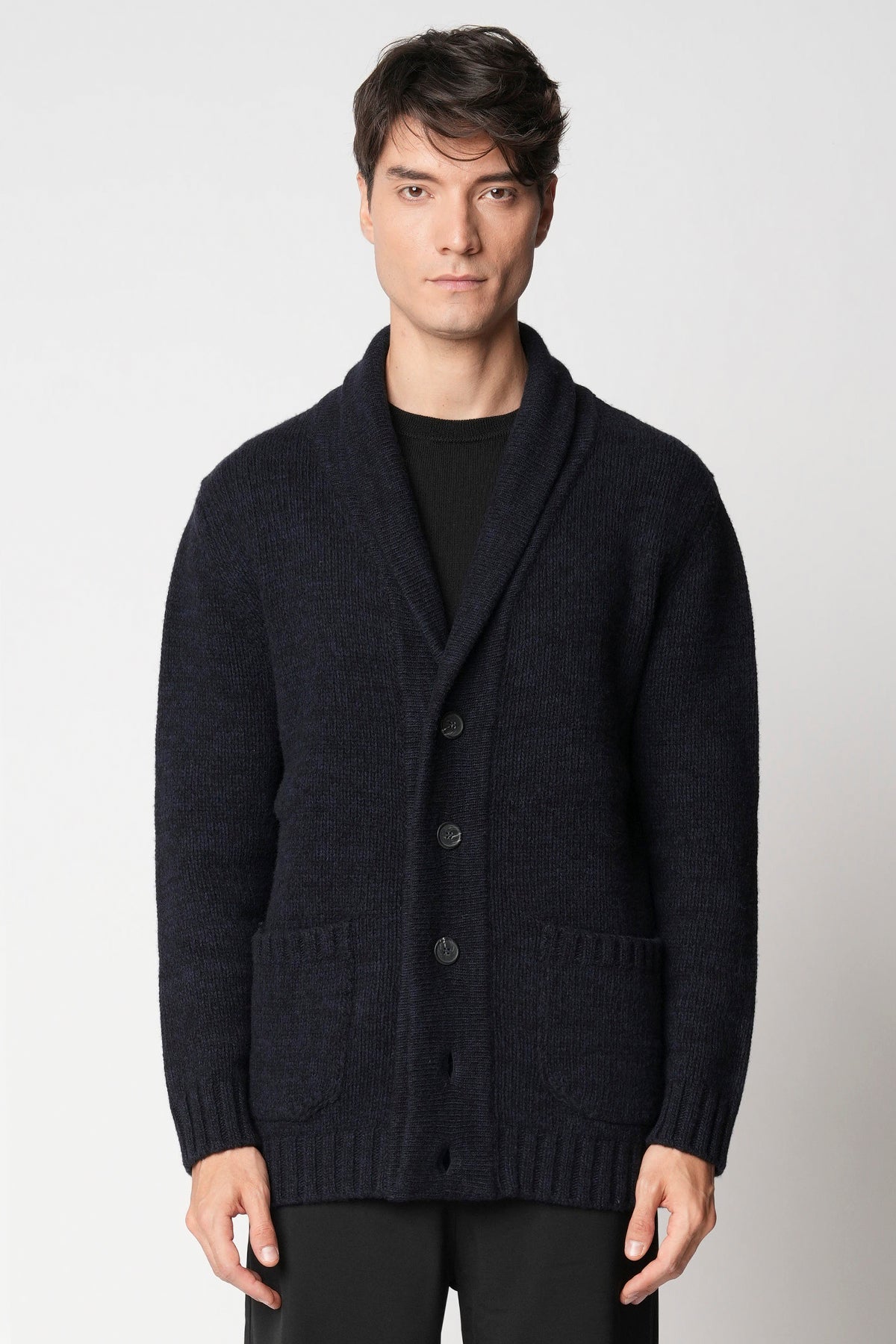 Maxi cardigan in lana e cashmere mouliné blu/nero fin.3