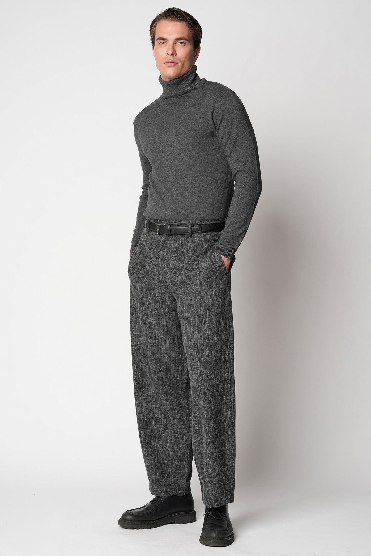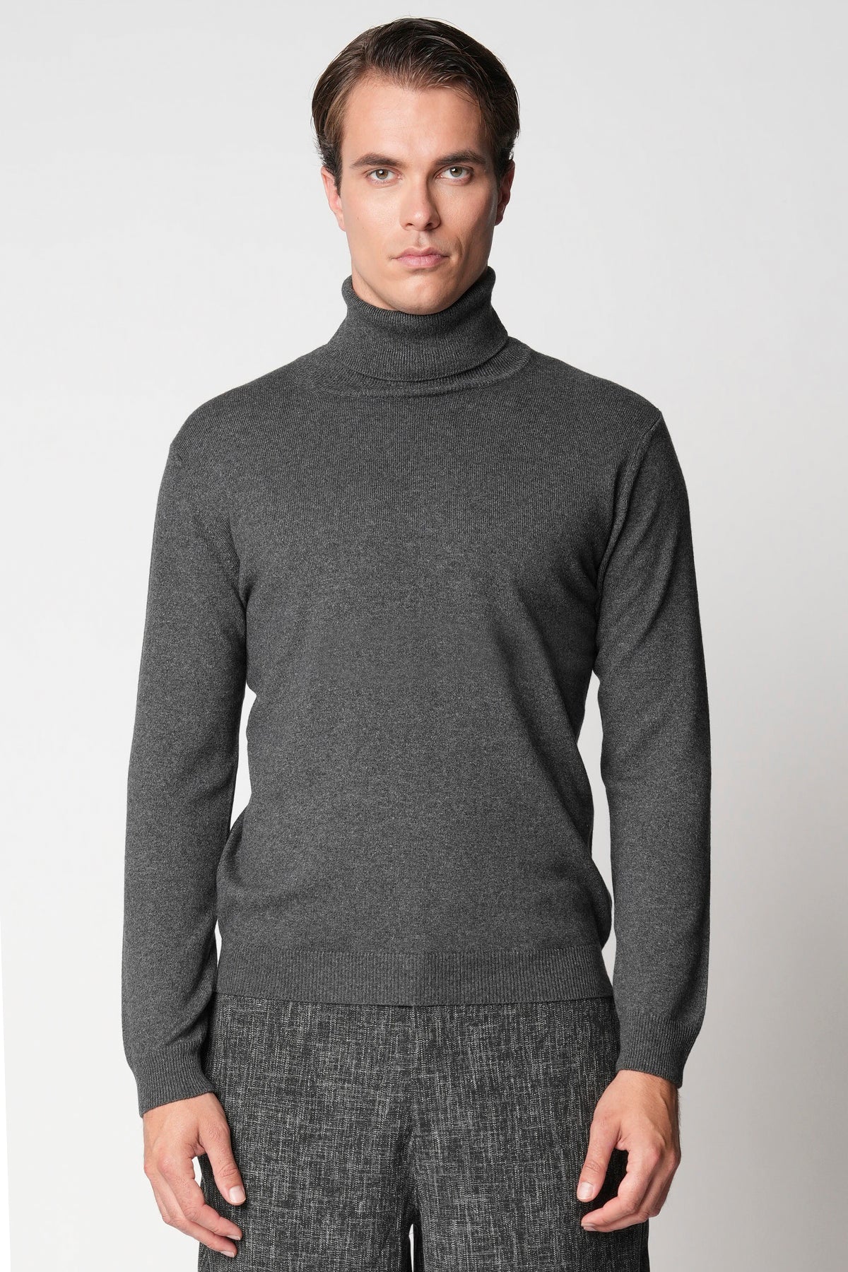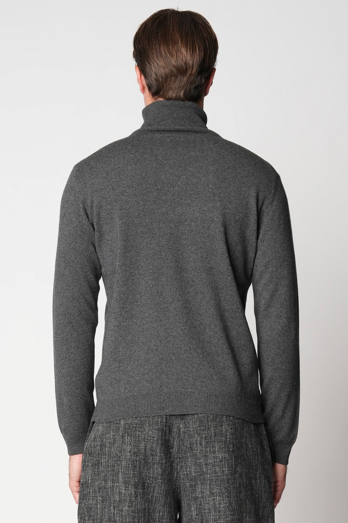 Il tocco della seta incontra la carezza del cashmere in una trama che unisce luminosità, leggerezza e calore. La seta regala una lucentezza naturale e una sensazione di freschezza sulla pelle, mentre il cashmere avvolge con la sua morbidezza impalpabile, offrendo un comfort senza paragoni. La lavorazione fine e la vestibilità regolare rendono questo dolcevita un capo essenziale e sofisticato, perfetto da indossare sotto una giacca o da solo, per esprimere un’eleganza discreta e autentica. Un equilibrio perfetto tra comfort, stile e sensorialità.