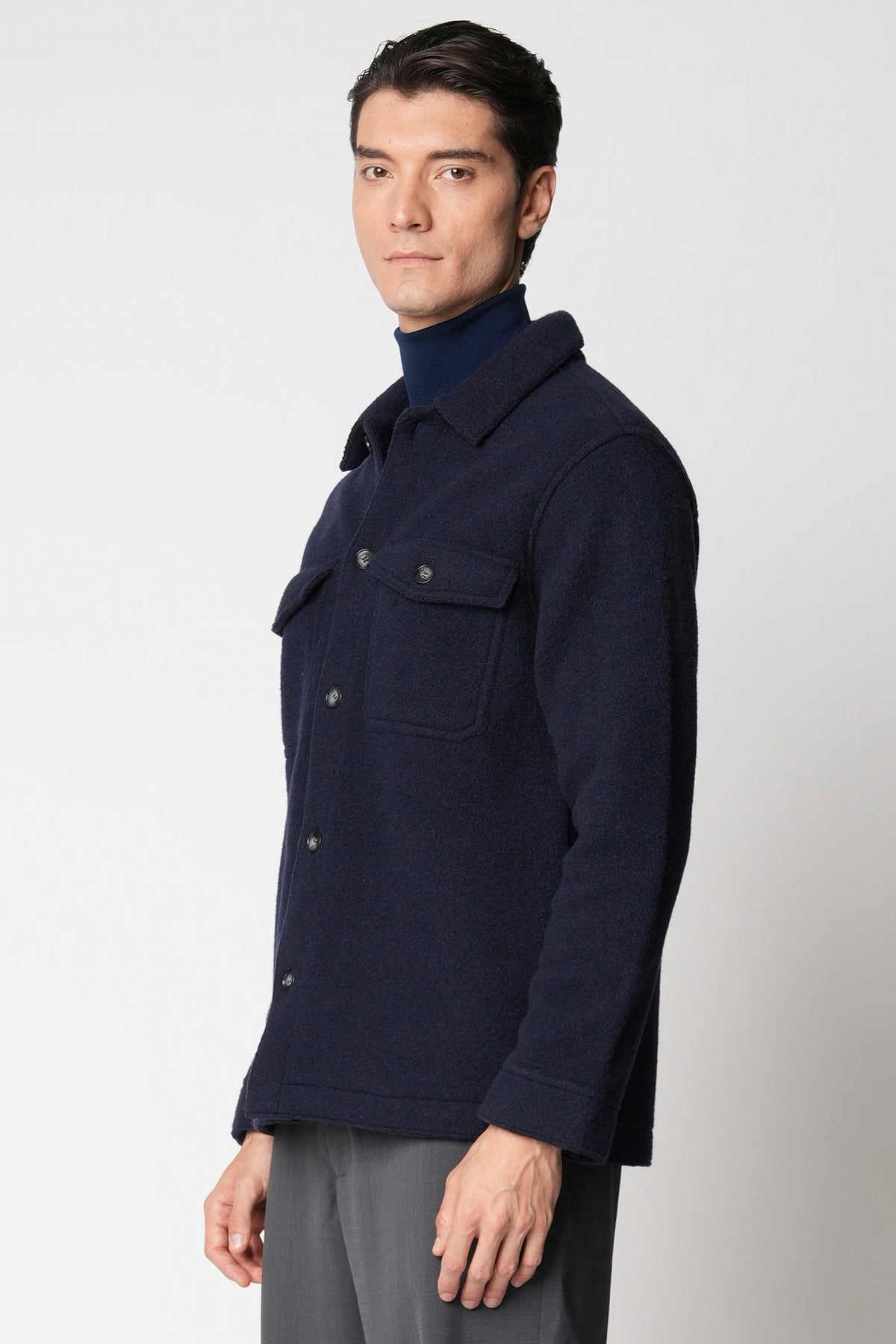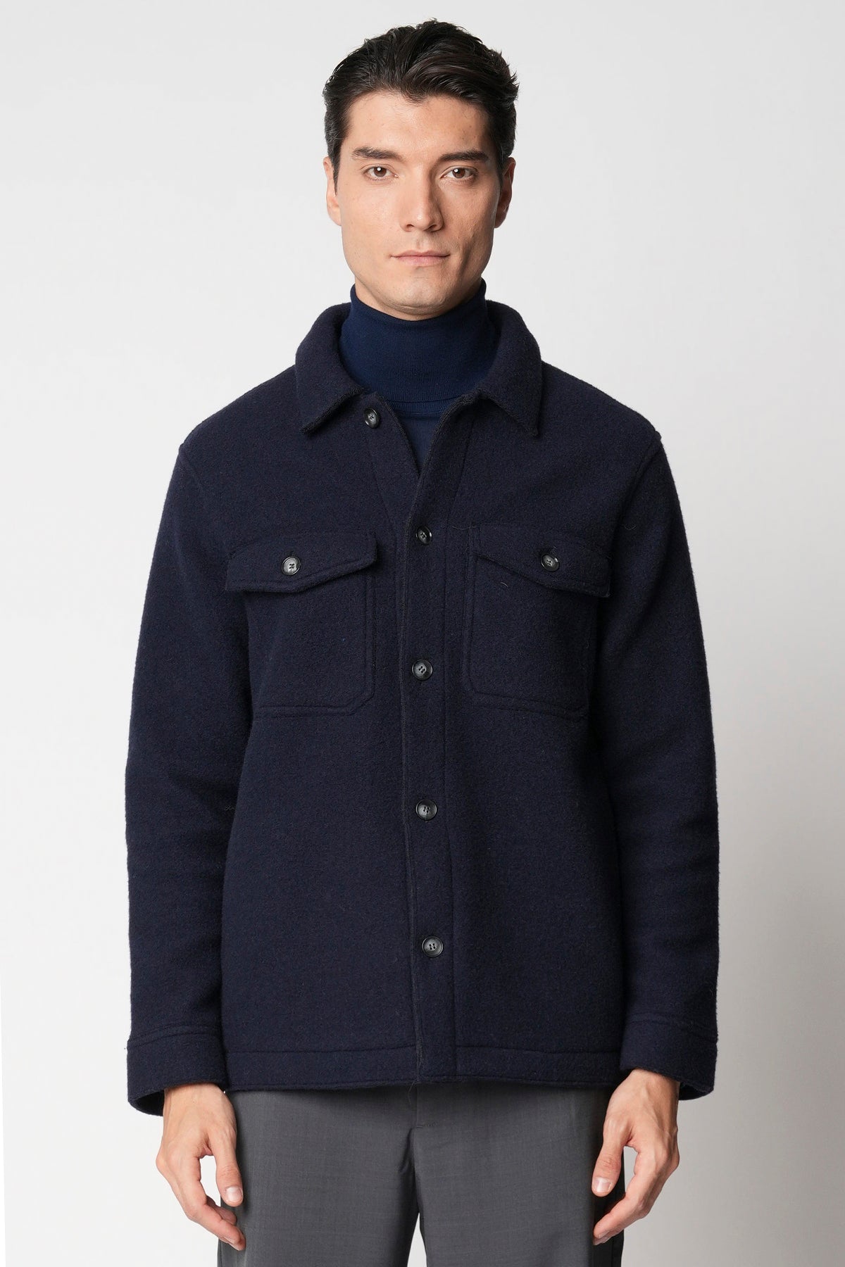 Giacca a camicia in tessuto misto lana. Chiusura con bottoni e tasche. Caldo ed elegante, è il capospalla ideale per ogni occasione. La vestibilità è regolare.