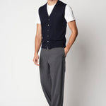 Il modello è alto 187 cm, petto 96 cm, vita 80 cm e veste una taglia 50.