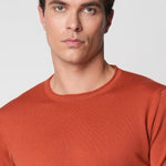 Il modello è alto 187 cm, petto 96 cm, vita 80 cm e veste una taglia 50.