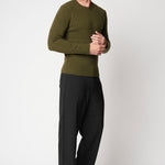 Il modello è alto 187 cm, petto 96 cm, vita 80 cm e veste una taglia 50.