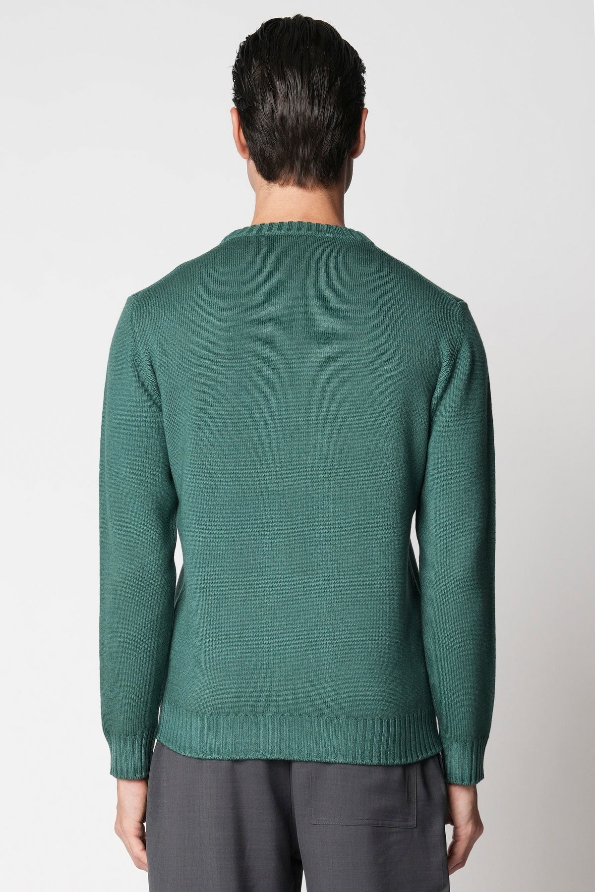 Realizzata in lana merinos extrafine lavorata in finezza 7, questa maglia girocollo esprime un’eleganza autentica e senza tempo. La tintura invecchiata regala al filato una profondità di colore unica, con leggere sfumature che conferiscono al capo un carattere vissuto ma raffinato. Il design essenziale è valorizzato da linee pulite e da un fit regolare che assicura comfort e versatilità. Perfetta come strato leggero nelle mezze stagioni o sotto una giacca nelle giornate più fresche, rappresenta un equilibrio impeccabile tra artigianalità, comfort e stile contemporaneo.