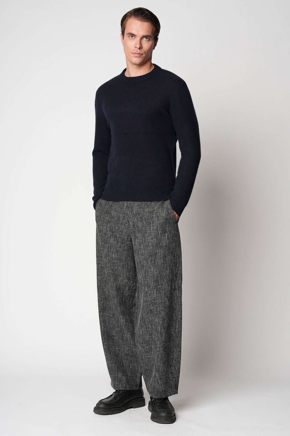 bellwood produce capi in 100% cashmere filato in Toscana, con fibre lunghe e pure provenienti dai pascoli della Mongolia. Il nuovo trattamento “Teddy” rende il tessuto morbido e avvolgente, con un naturale effetto vissuto che ne esalta l’autenticità nel tempo. Il cashmere bellwood è resistente, durevole e diventa più soffice a ogni lavaggio. Lavabile in lavatrice (programma lana/delicati) o a secco. Fornito con sacchetto antitarme. Vestibilità regolare.