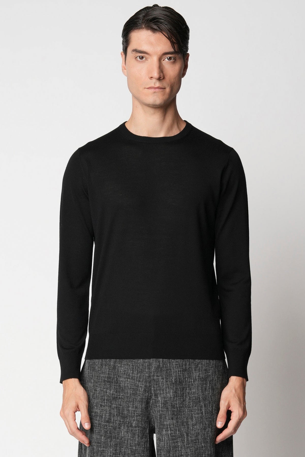 Girocollo rasato in lana merino extrafine fin.18