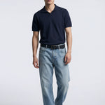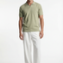 Maglia polo uomo manica corta in cotone crêpe senza bottoni, leggera e traspirante