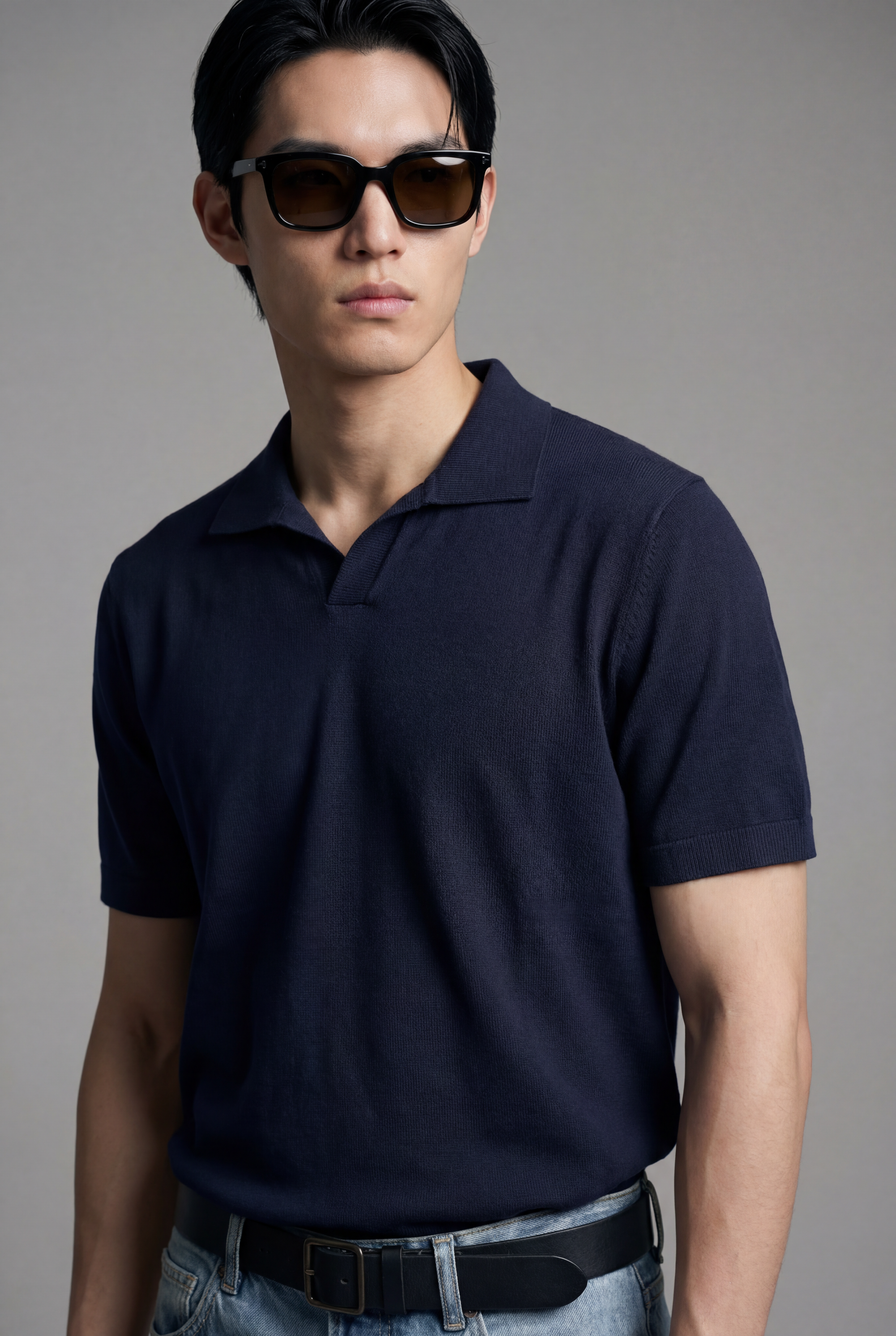 Questa maglia polo uomo manica corta senza bottoni è realizzata in 100% cotone crêpe, un tessuto naturale ideale per garantire freschezza, leggerezza e traspirabilità durante le giornate più calde.