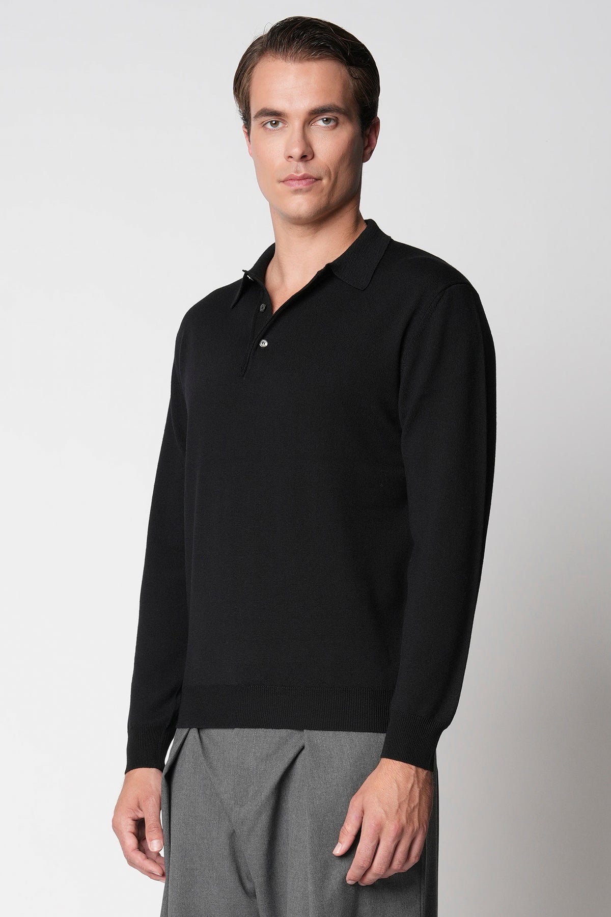 Polo bottoni rasato in lana merino extrafine fin.14
