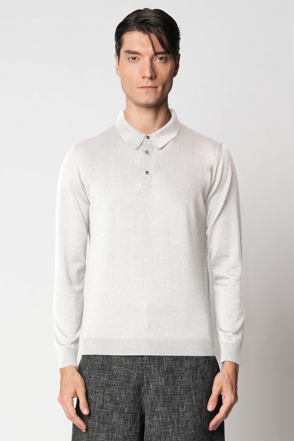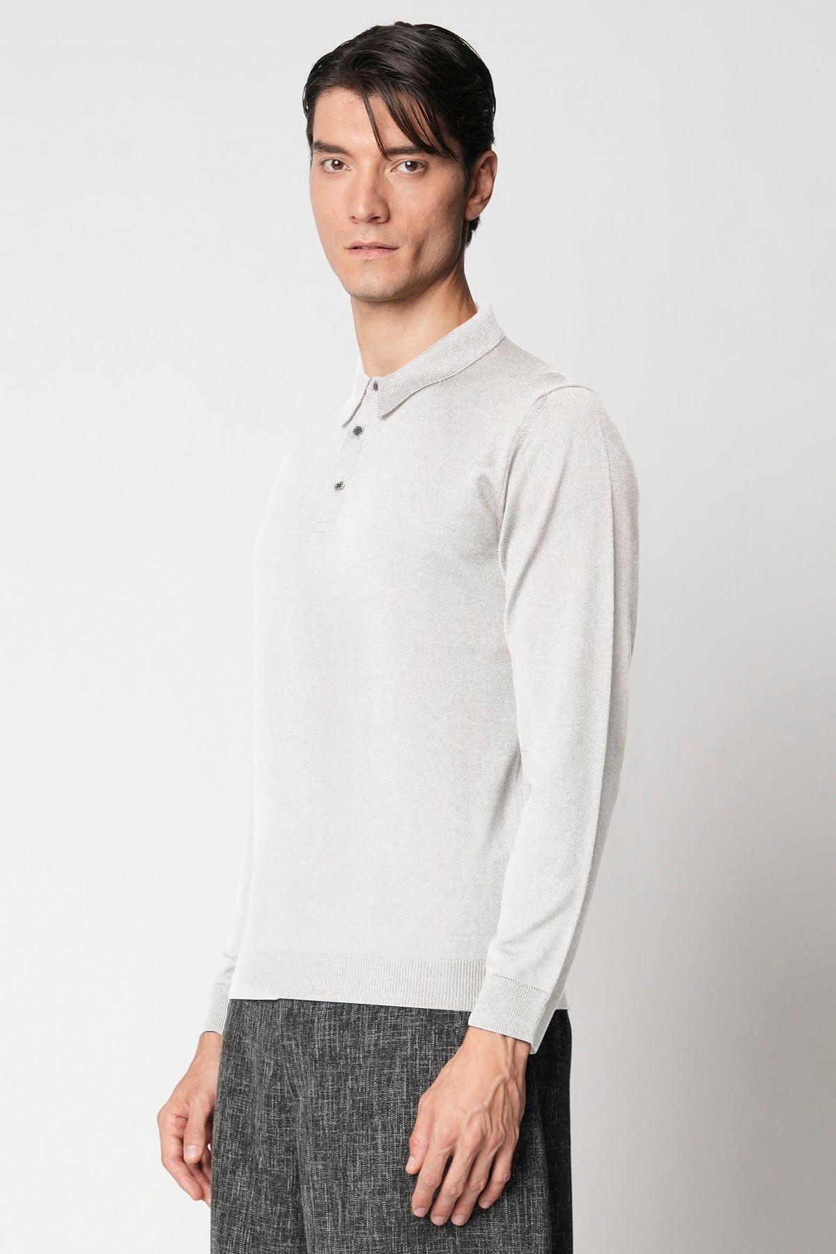Polo bottoni rasato in lana merino extrafine fin.14