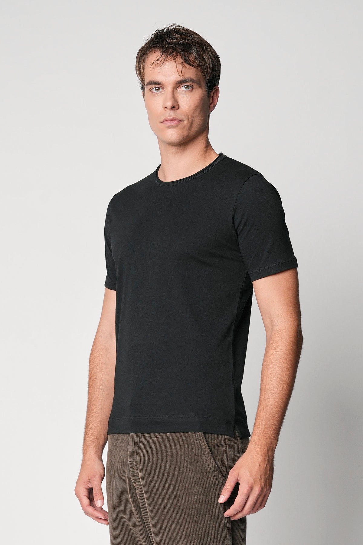 T-shirt a manica corta con collo a rollino e spacchetti laterali. Leggera e traspirante, può essere indossata da sola nelle giornate più miti oppure sotto un maglione per un comfort extra nelle stagioni fredde. Le t-shirt bellwood sono realizzate in jersey di cotone ritorto, un tessuto che impedisce al capo di deformarsi durante il lavaggio, rendendo la stiratura più semplice e garantendo un aspetto sempre ordinato. Vestibilità regolare.