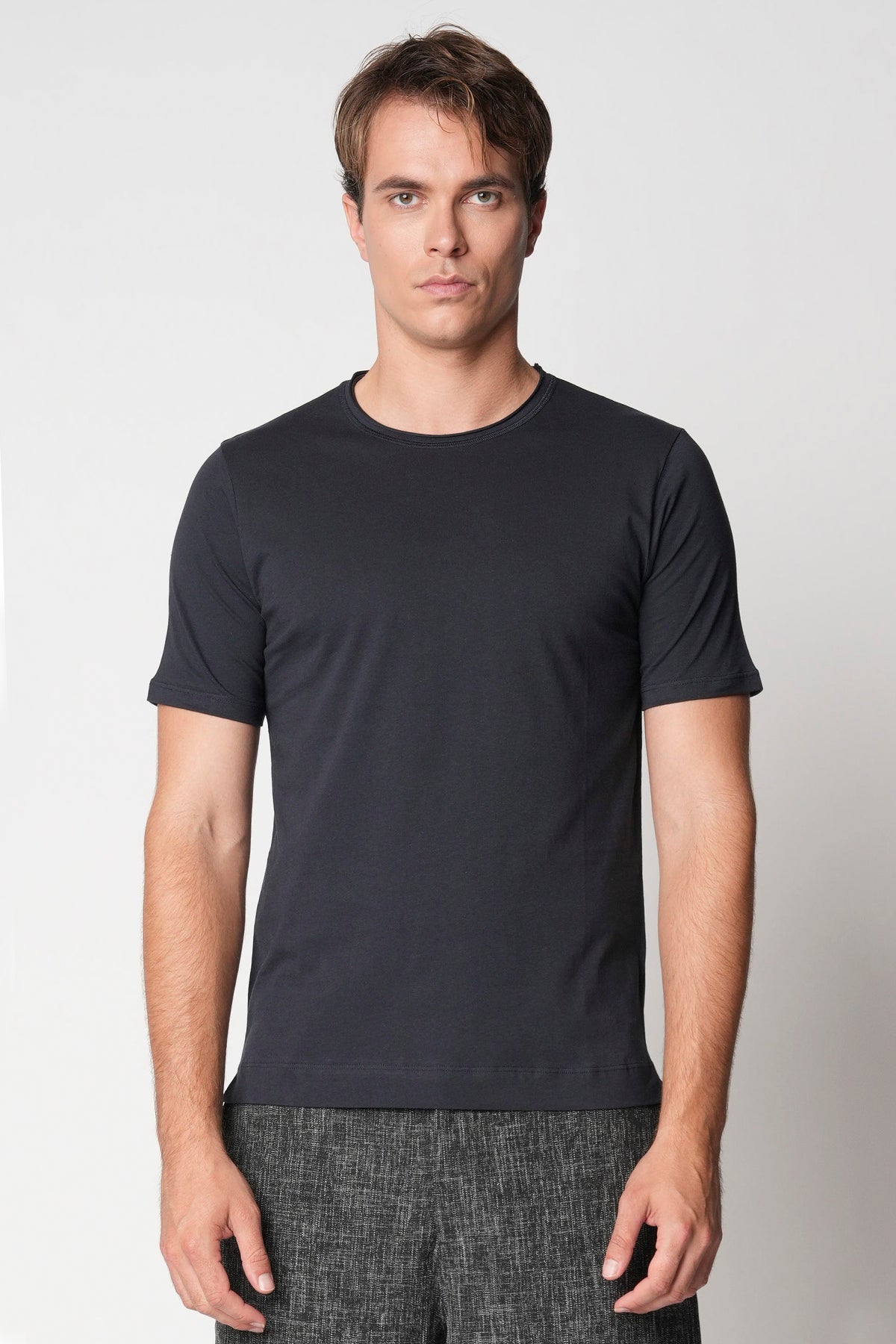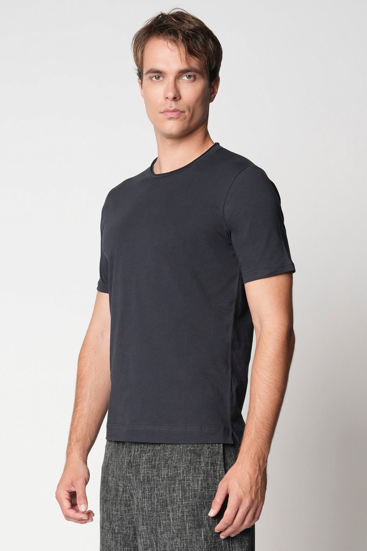 T-shirt a manica corta con collo a rollino e spacchetti laterali. Leggera e traspirante, può essere indossata da sola nelle giornate più miti oppure sotto un maglione per un comfort extra nelle stagioni fredde. Le t-shirt bellwood sono realizzate in jersey di cotone ritorto, un tessuto che impedisce al capo di deformarsi durante il lavaggio, rendendo la stiratura più semplice e garantendo un aspetto sempre ordinato. Vestibilità regolare.