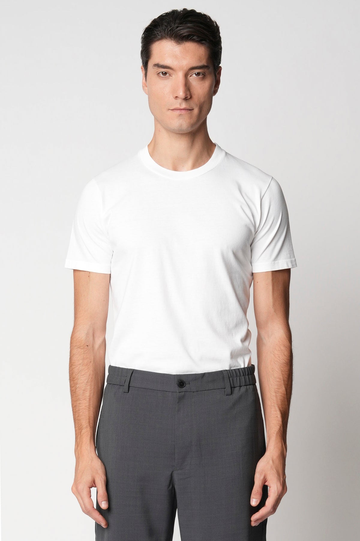 T-shirt a manica corta con collo a costina. Leggera e traspirante, può essere indossata da sola nelle giornate più miti oppure sotto un maglione per un comfort extra nelle stagioni fredde. Le t-shirt bellwood sono realizzate in jersey di cotone ritorto, un tessuto che impedisce al capo di deformarsi durante il lavaggio, rendendo la stiratura più semplice e garantendo un aspetto sempre ordinato. Vestibilità regolare.