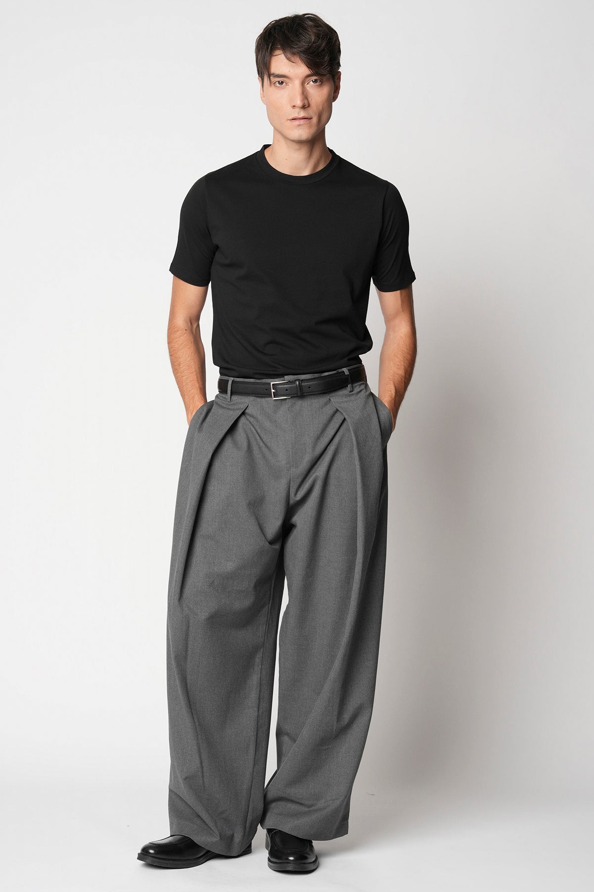 Il modello è alto 187 cm, petto 96 cm, vita 80 cm e veste una taglia 50.