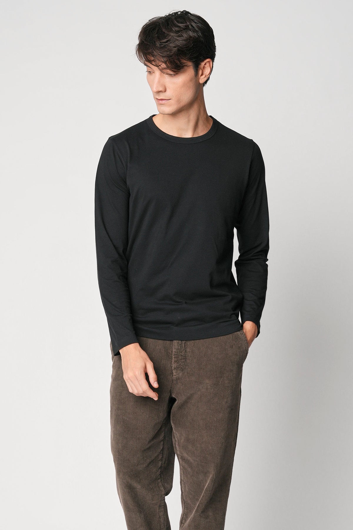 T-shirt a manica lunga con spacchetti laterali sul fondo, dal design essenziale e versatile. Leggera e traspirante, può essere indossata da sola oppure sotto una maglia per un comfort extra nelle giornate più fresche. Realizzata in jersey di cotone ritorto, mantiene la forma lavaggio dopo lavaggio, evitando fastidiosi avvitamenti e rendendo la stiratura più semplice. Il risultato è una t-shirt sempre ordinata e impeccabile. Vestibilità regolare.